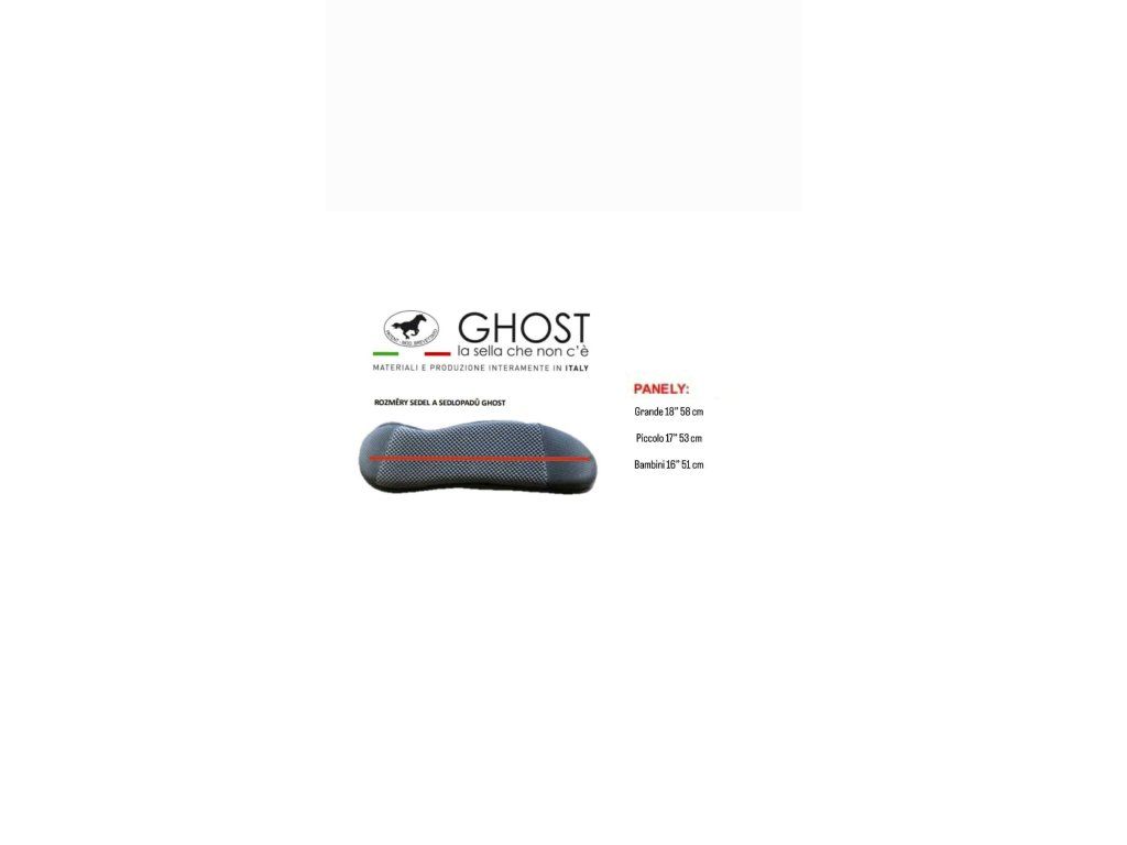 - Sedla Ghost jsou stabilní, neobsahují žádné tvrdé části, jsou velice flexibilní a přizpůsobí se tvaru koně.