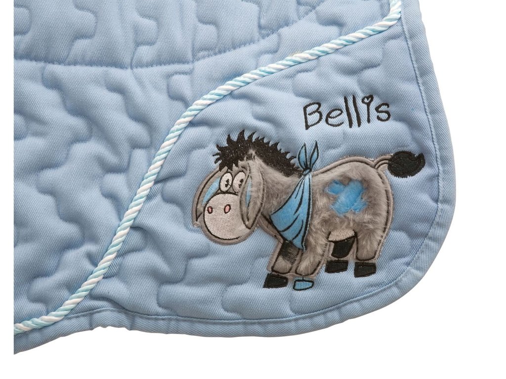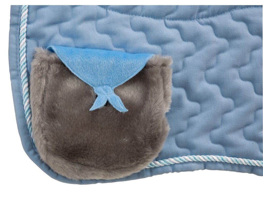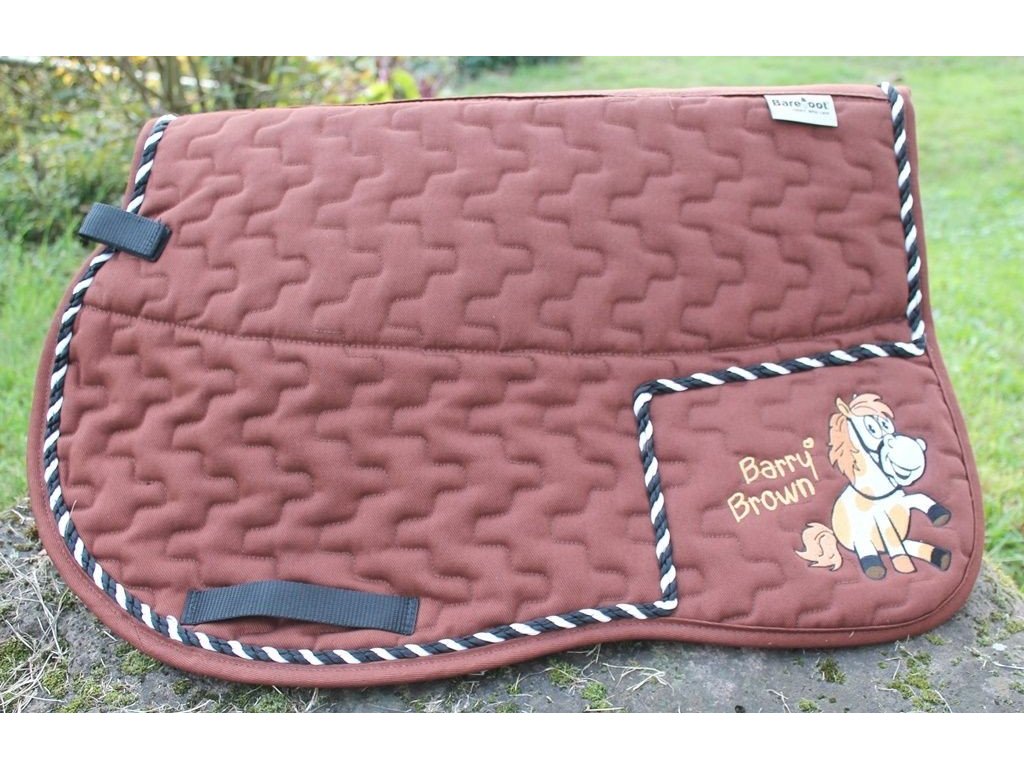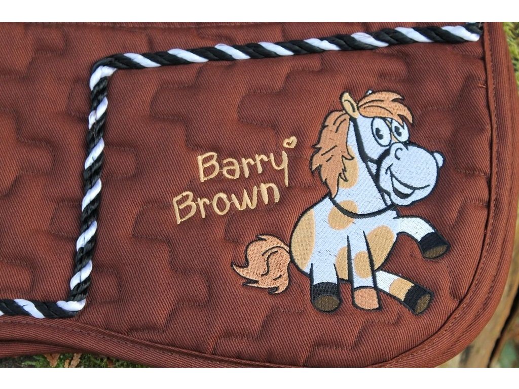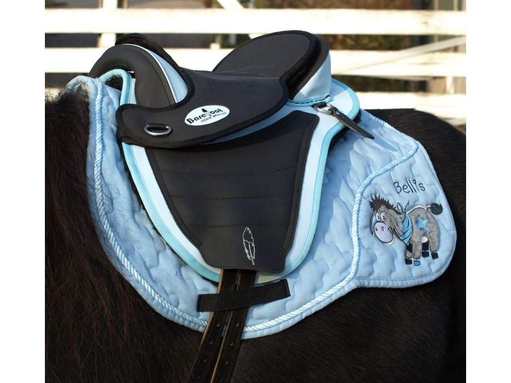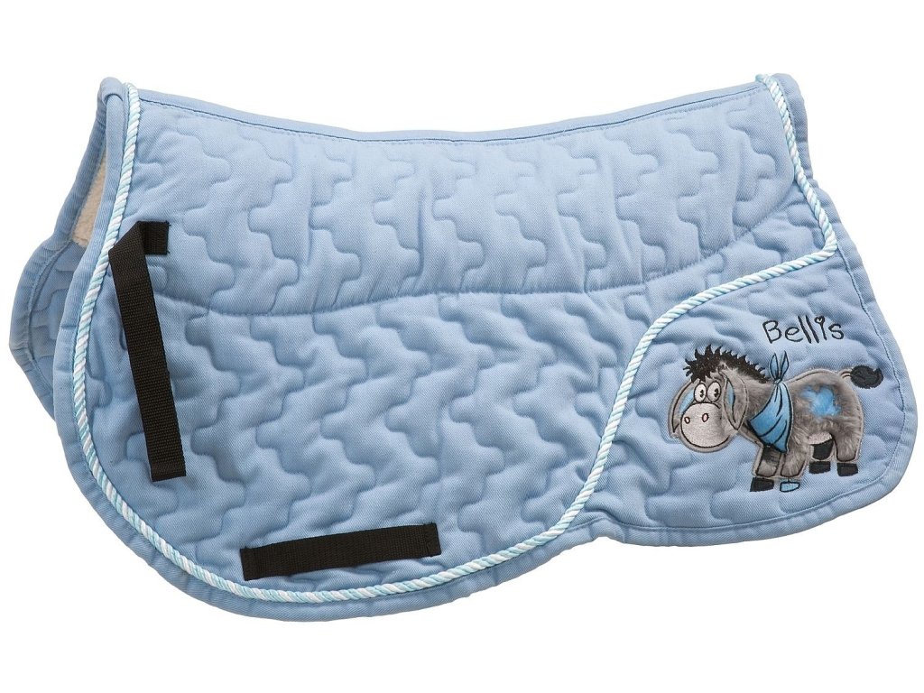 Nádherné dětské podsedlové deky pod sedla Arizona a Cheyenne vhodná pod pony sedla. Jedná se o univerzální deku vhodnou pro oba modely. Deka je v podsedlové části vypolstrovaná. Dečka je provedena v krásných barvách ve vzoru řad Barry a Bellis. Deka je ozdobena vyšitým maskotem oslíka na boku deky z jedné strany a kapsičkou z umělé kožešiny na nezbytné pamlsky na straně druhé.