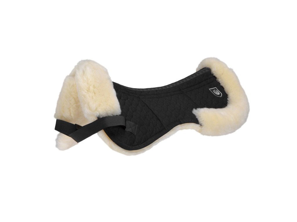 Tato beránková podložka pod sedlo je vhodná pro koně s výrazným kohoutkem. Spodní část je z vysoce kvalitní vyčiněné jehněčí kůže s výškou vlny 30 mm. V oblasti páteřního kanálu beránek není, a na každé straně podložky jsou tři kapsy pro dodatečné výplně. Díky tomuto systému je podložka velmi variabilní. Vrchní strana je vyrobena z odolné sedlové látky. Na sedlo lze připevnit pomocí úchytu na suchý zip. Zadní lem dodatečně fixuje, chrání a zdobí. Pravý beránek je ideální k použití přímo na koně bez další dečky - skvěle rozkládá tlak, saje, dýchá a má termoregulační vlastnosti.