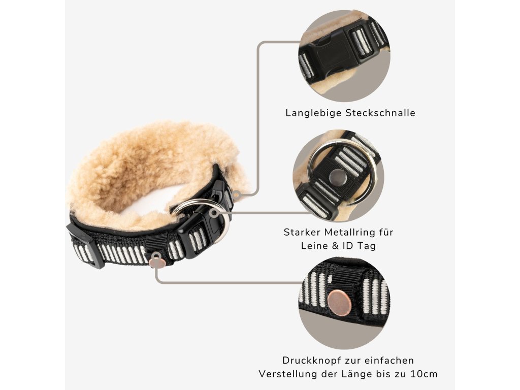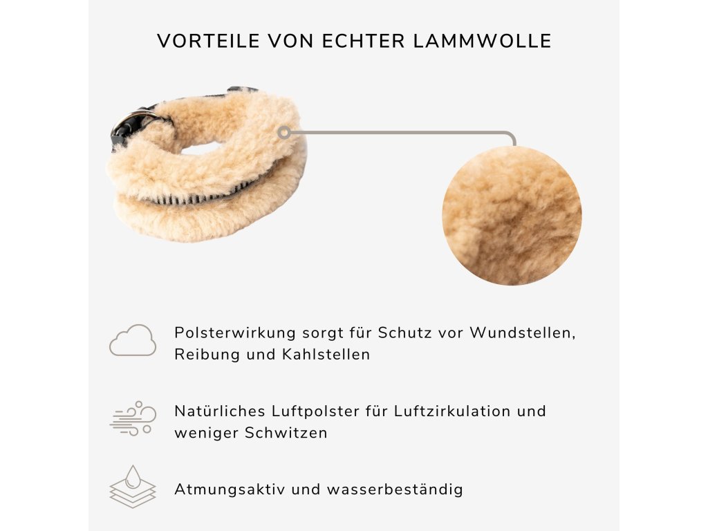 Anti-Hair-Breaker je inovací od WERNER CHRIST: Psí obojek je kompletně vyroben z jehněčí vlny. To poskytuje ochranu proti tření a bolesti, což výrazně snižuje lámání srsti a lysá místa. Jehněčí vlna má vysoký tlumící účinek. Je prodyšná, voděodolná a má vlastnosti vyrovnávající teplotu. Přirozený vzduchový polštář zajišťuje cirkulaci vzduchu a tím i zvýšené pohodlí.
