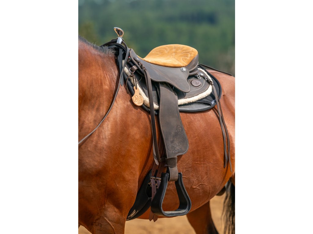 Westernové úzké fendry pro sedlo USA Ghost® a jiná sedla westernového typu s úzkým očkem pro řemeny, vyrobené z kvalitní kůže v kombinaci s nesmrtelným biothanem, který se nikdy nevytahá. Do poznámky specifikujte šíři řemenu pro třmen (běžná šířka očka 2,5 cm, u westernových sedel 5 cm). Je možné si je personalizovat razítky do kůže.