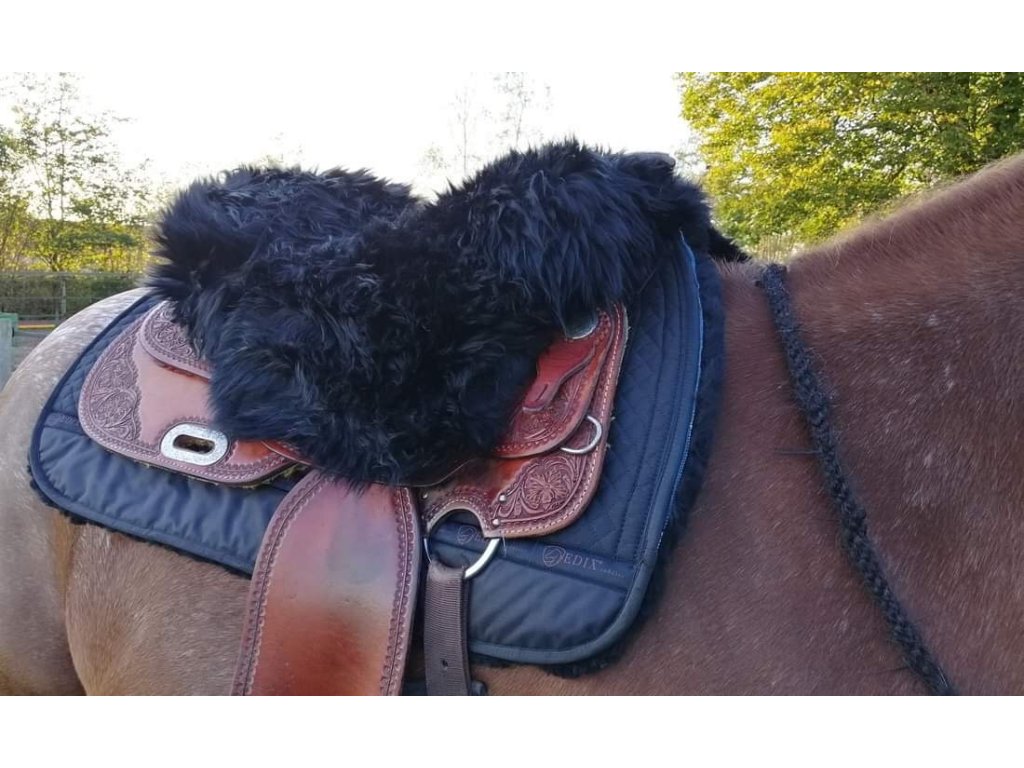Beránkové posedlí má univerzální velikost a lze jej použít na všech westernových sedlech. Posedlí je vybaveno gumičkou, takže se dá snadno a úhledně natáhnout kolem sedla. K dispozici je výřez pro hrušku a na spodní straně sedla jsou bavlněné tkaničky pro další upevnění sedla k sedlu.