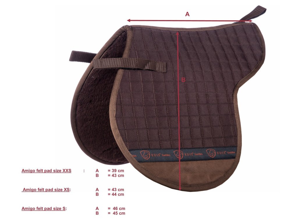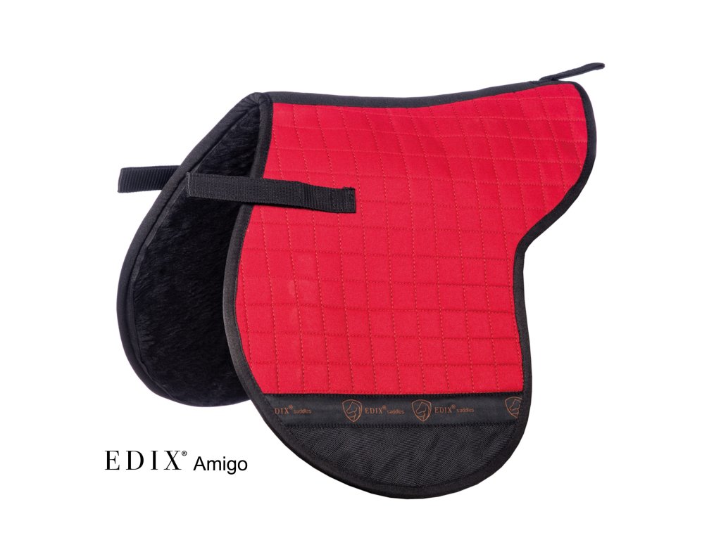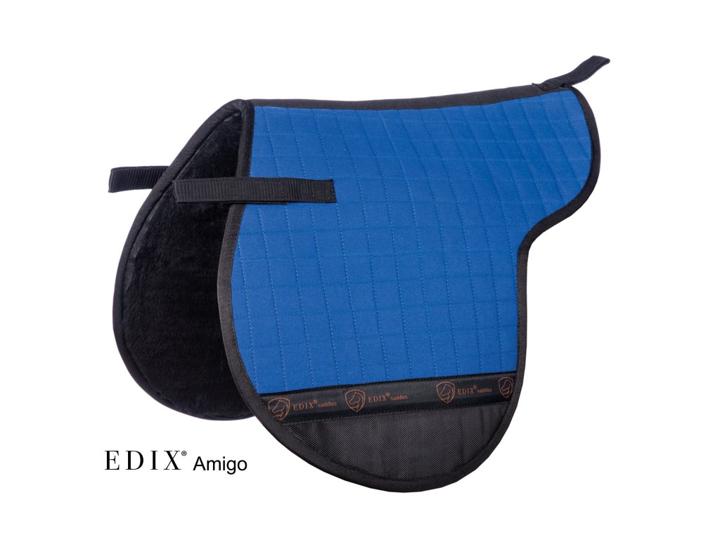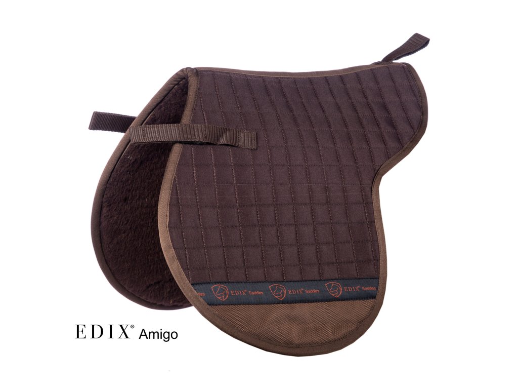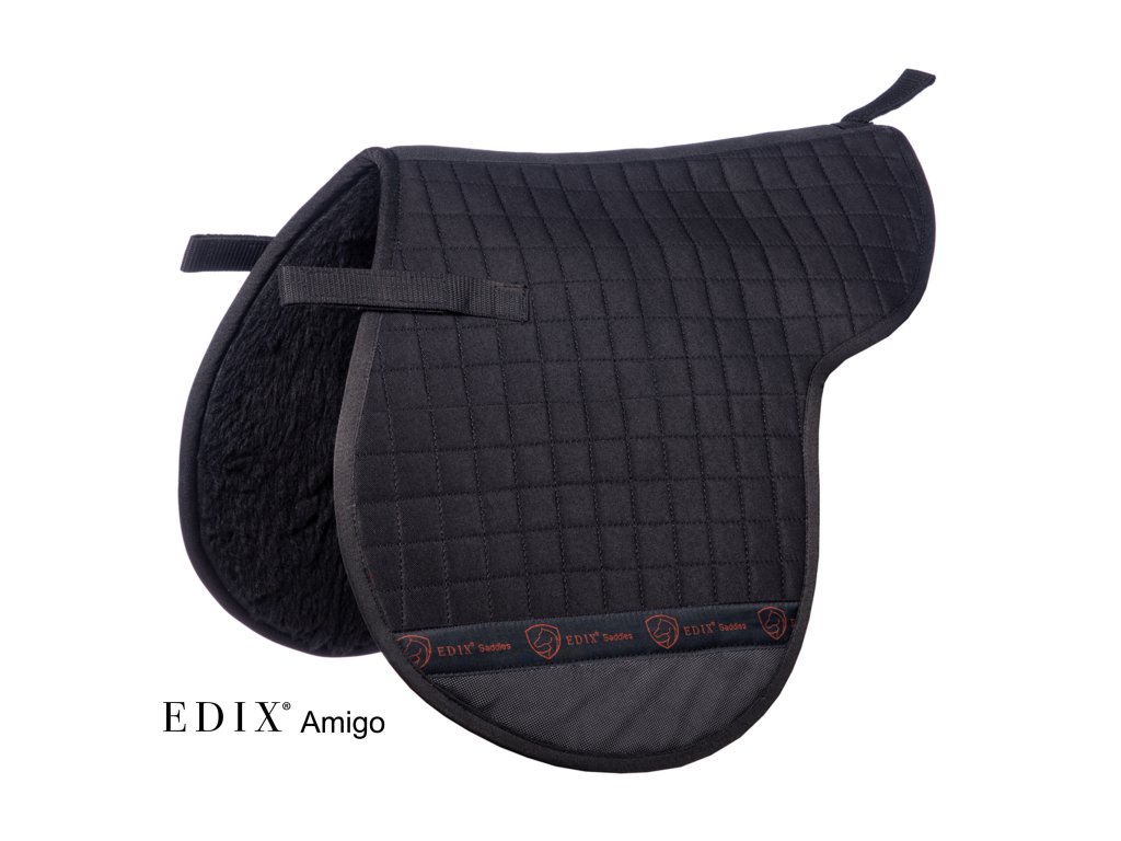 Podsedlová dečka s kapsami na výplně, která sedne nejen pod bezkostrová sedla značky, EDIX, ale i ostatní bezkostry. Spodní část horní části podložky, kde se noha jezdce při jízdě tře, má nylonovou výztuhu, která zabraňuje opotřebení. Protože je podložka EDIX® Amigo vyrobena pouze z bavlny a syntetických tkanin, je velmi snadno udržovatelná.