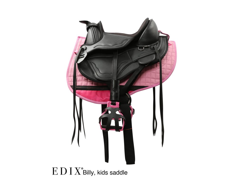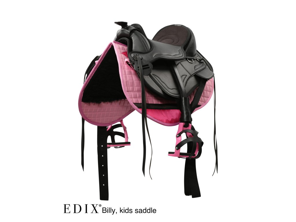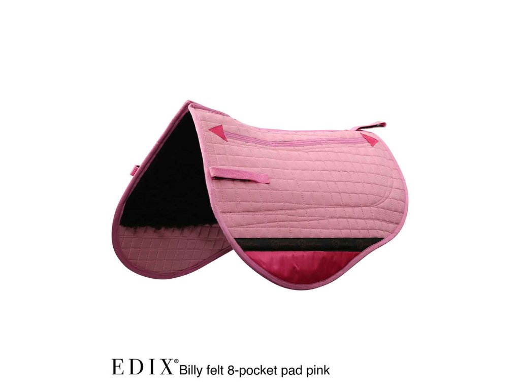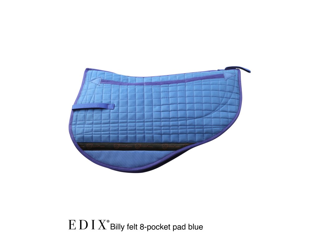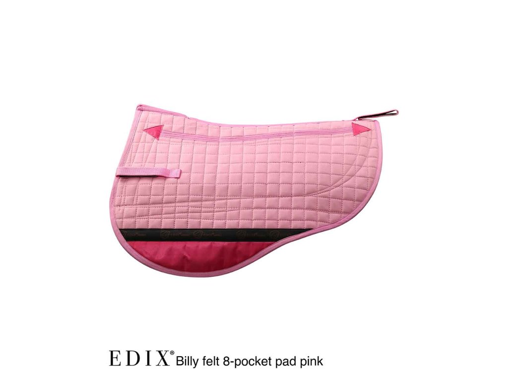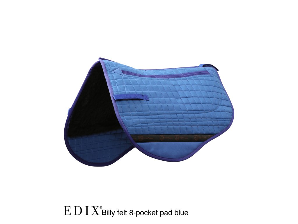 Vrchní část je vyrobena z odolné směsi poly-bavlny, na které jsou na levé i pravé straně podložky přišity 3 samostatné vkládací kapsy s vrstvou plsti, a to v úrovni vkládacích kapes na vnitřní straně. Vnitřek podložky má 2 velké vkládací kapsy, do kterých lze umístit vložky. Spodní část horní části podložky, kde se noha jezdce při jízdě tře, má nylonovou výztuhu, která zabraňuje opotřebení. Spodní část podložky je zakončena syntetickou vlnou a samostatné zasouvací přihrádky na levé i pravé straně podložky vytvářejí volný páteřní kanál. Plstěná podložka Billy perfektně padne pod dětské westernové sedlo EDIX Billy, ale i pod westernové sedla jiných značek.