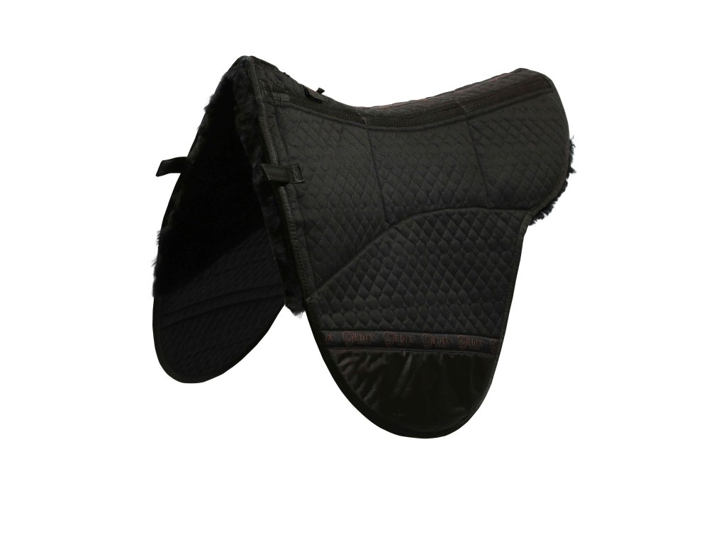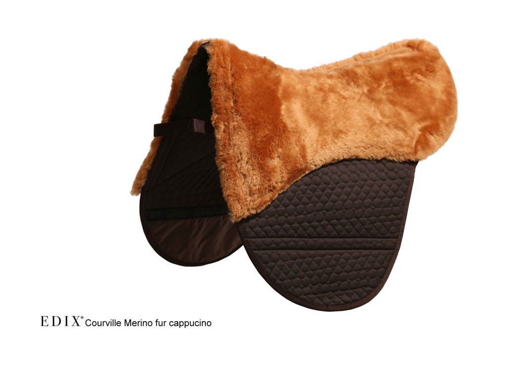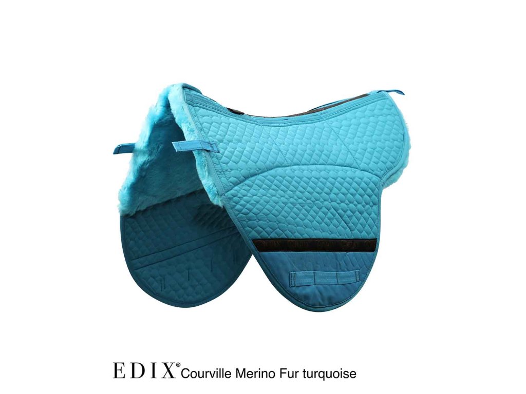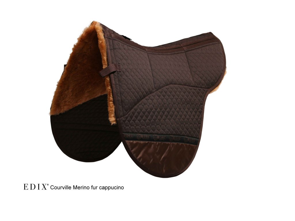 Nový volný páteřní kanál podložek EDIX® Merino s krátce stříhanou merino vlnou byl vyvinut tak, aby se snížily tlakové body a poskytovala se co nejlepší ochrana páteře vašeho koně. Navíc má kožešinová deka Merino velkou plochu, takže panely sedla na ní zcela spočívají. Výsledkem je, že přírodní vlákna efektivně odvádějí pot ven, zároveň rozkládají tlak a absorbují nárazy.