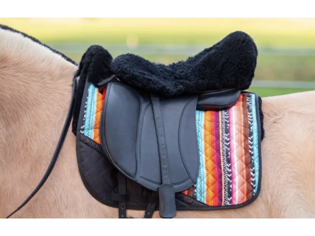 Vysoce kvalitní merino vlna je technicky pravděpodobně stále jedním z nejmodernějších materiálů na světě. Protože se místo hoblinky a tkané vlny používá kompletní jehněčí kožešina, jsou výhody tohoto přírodního materiálu optimálně využity. Proto doporučujeme používat jej přímo na hřbetě koně.