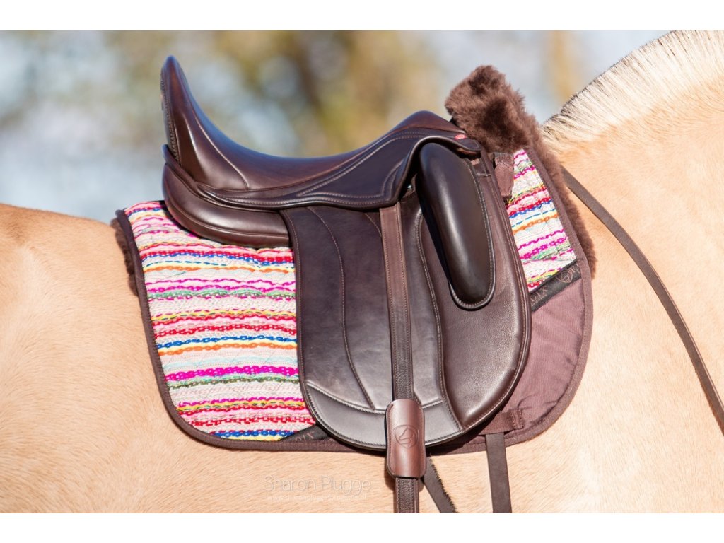 Dečka má kožešinový límec pro extra měkkost kolem kohoutku a je anatomicky tvarovaná. Na obou stranách páteře je velká kapsa a 3 malé kapsy nahoře na vložky, všechny s plstěnými vložkami. Samozřejmě lze dle potřeby zvolit jiný typ vložky. Protože má podložka 8 přihrádek na vložky, slouží ke zlepšení polohy sedla nebo k dodatečnému rozložení tlaku. V místech, kde se noha jezdce při jízdě tře, je k dispozici nylonová výztuha, která zabraňuje opotřebení.