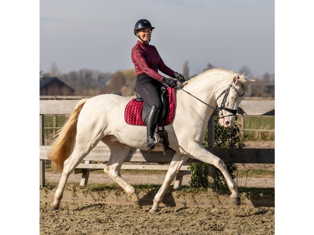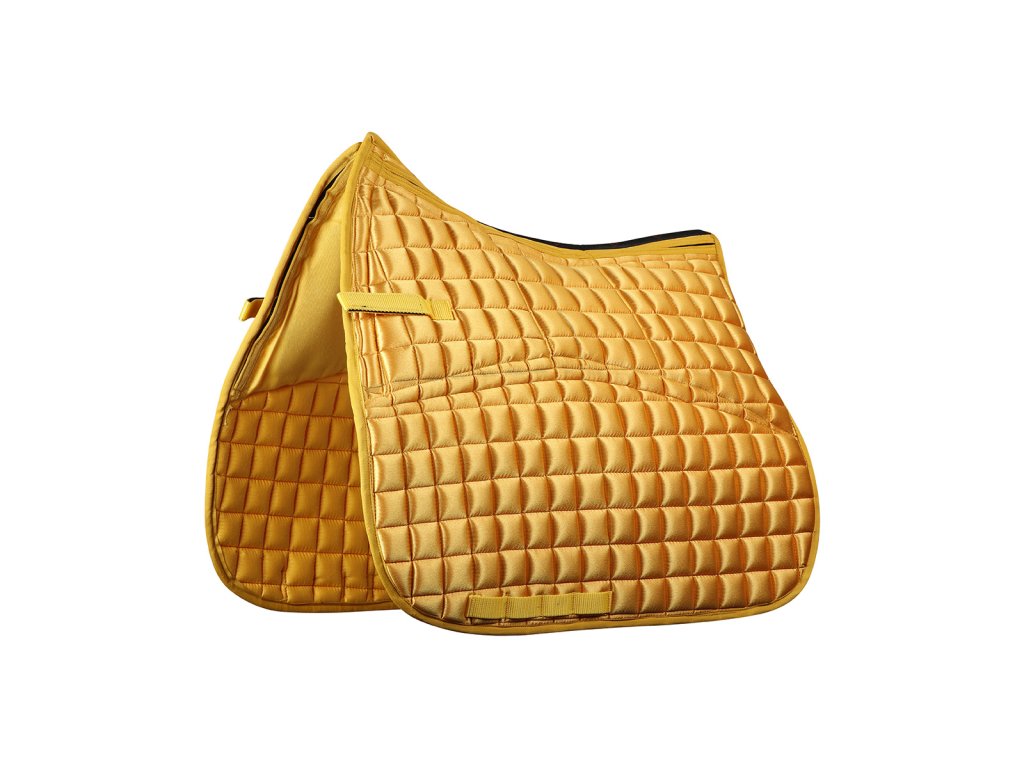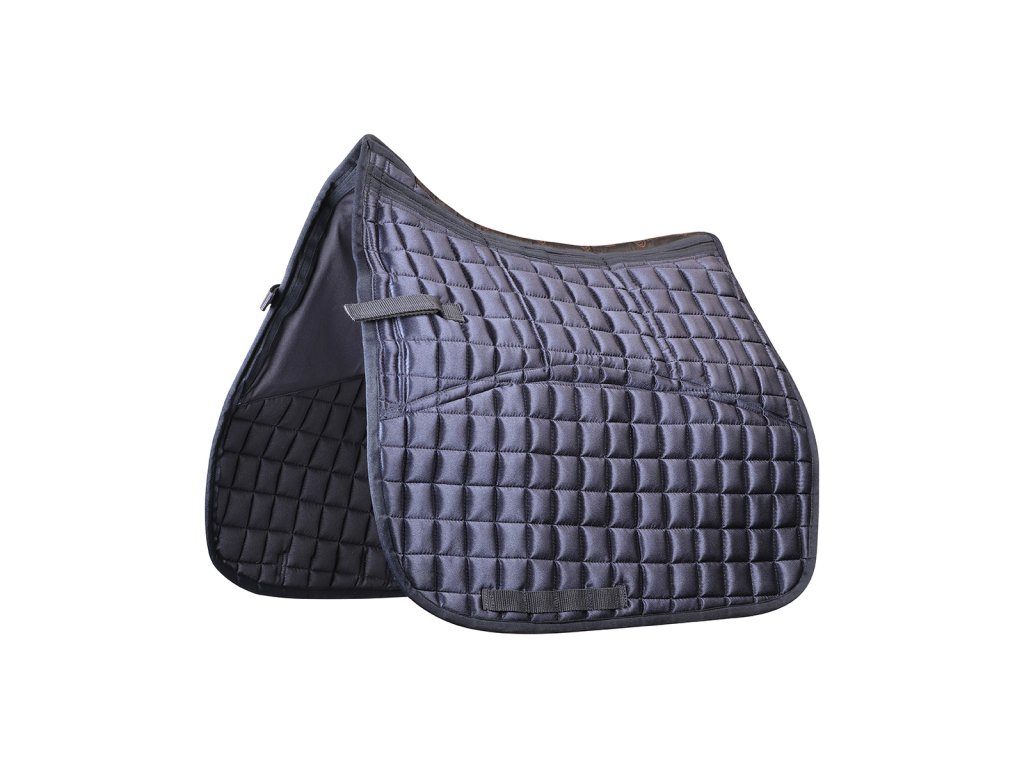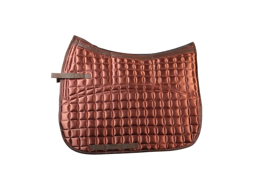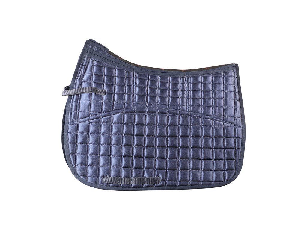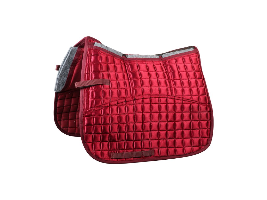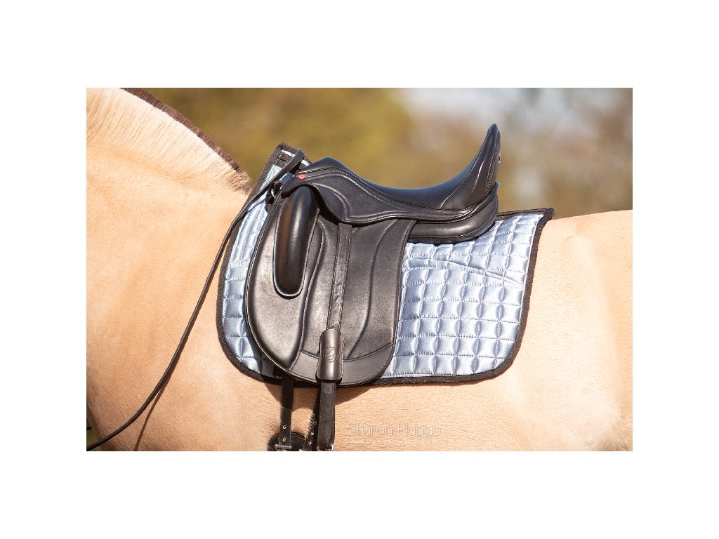Speciální korekční dečka s kapsami v metalickém vzhledu. Tato podložka má velkou přihrádku a 3 malé přihrádky na vložky na obou stranách páteře, všechny s plstěnými vložkami. V případě potřeby lze samozřejmě zvolit jiný typ vložky. Protože má podložka 8 kapes na vložky, existuje několik možností, jak zajistit další rozložení tlaku pomocí podložky a/nebo umístit sedlo do vyvážené polohy na koni. U sedla typu strom můžete s touto podložkou provést dočasnou korekci polohy.