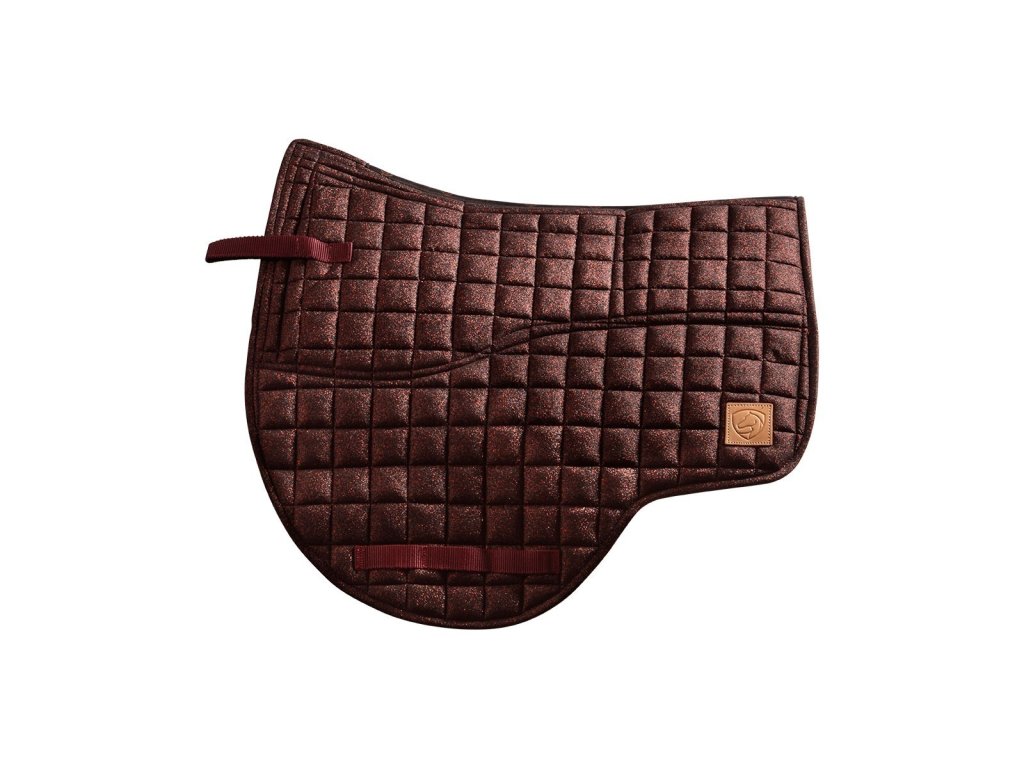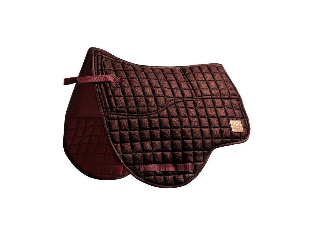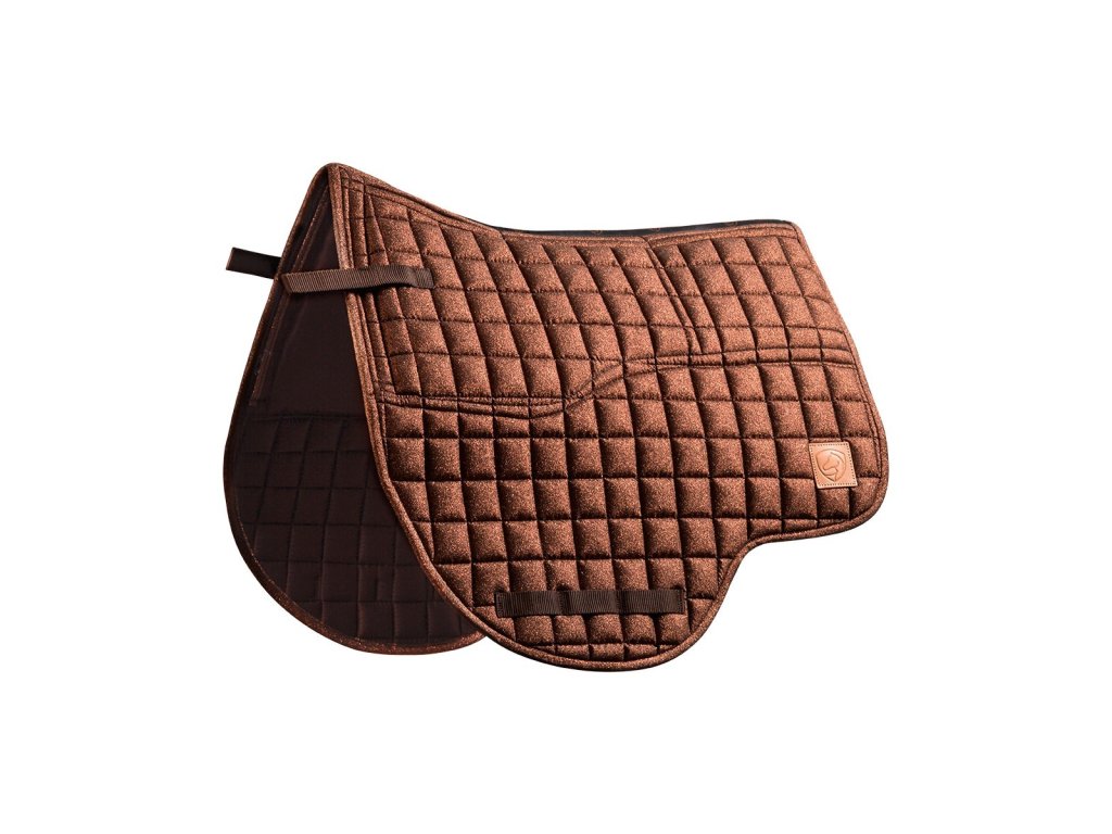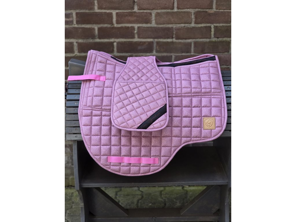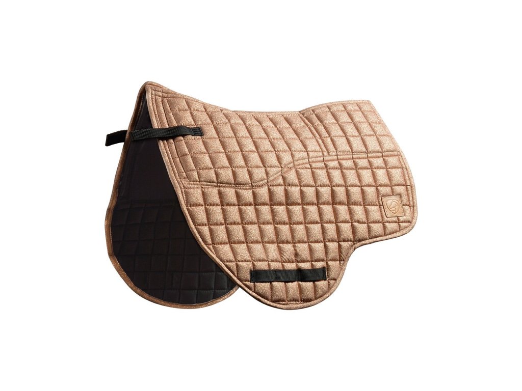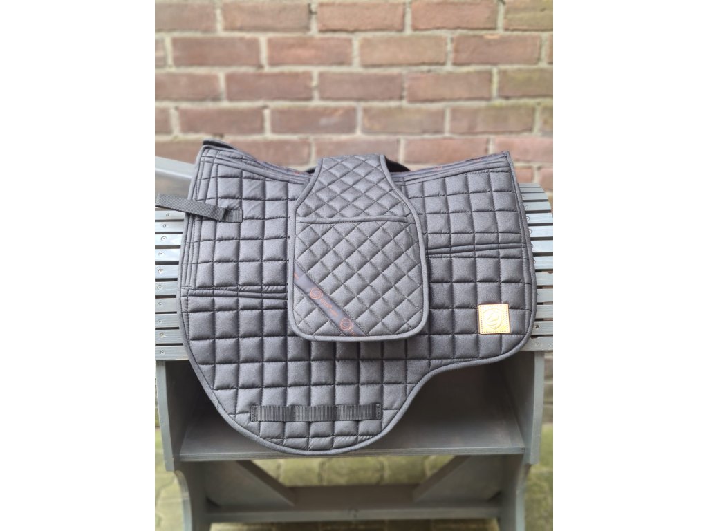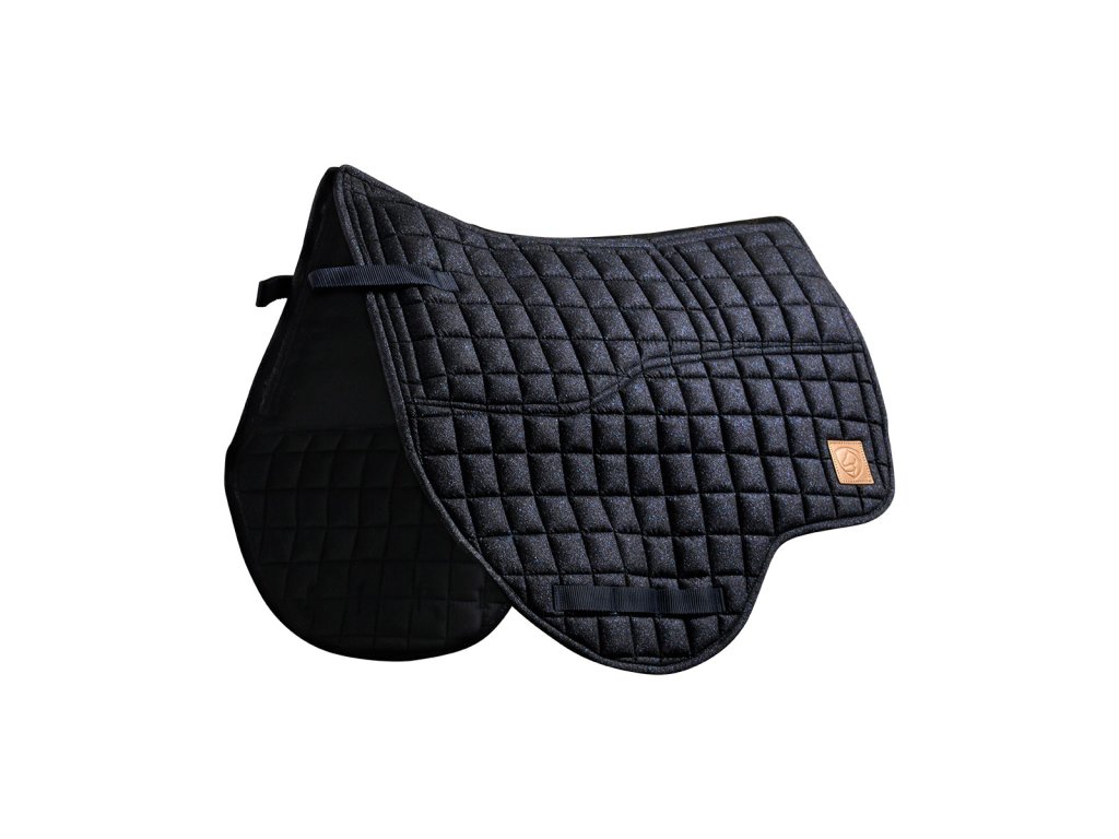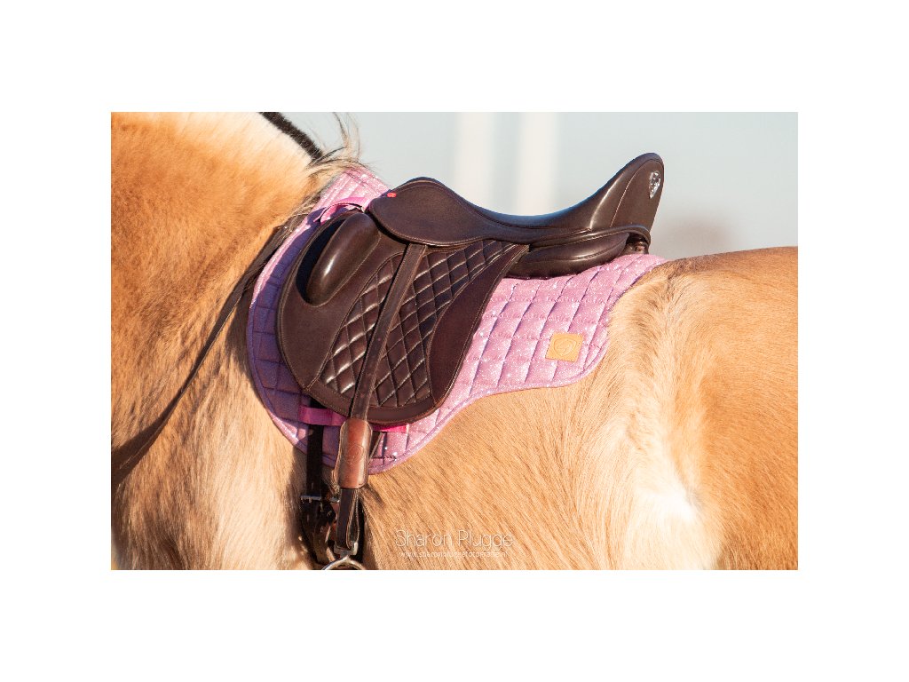Speciální korekční dečka s kapsami v třpytivém vzhledu. Tato podložka má velkou přihrádku a 3 malé přihrádky na vložky na obou stranách páteře, všechny s plstěnými vložkami. V případě potřeby lze samozřejmě zvolit jiný typ vložky. Protože má podložka 8 kapes na vložky, existuje několik možností, jak zajistit další rozložení tlaku pomocí podložky a/nebo umístit sedlo do vyvážené polohy na koni. U sedla typu strom můžete s touto podložkou provést dočasnou korekci polohy.