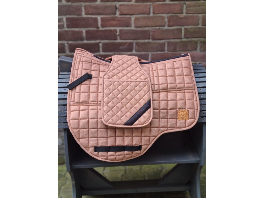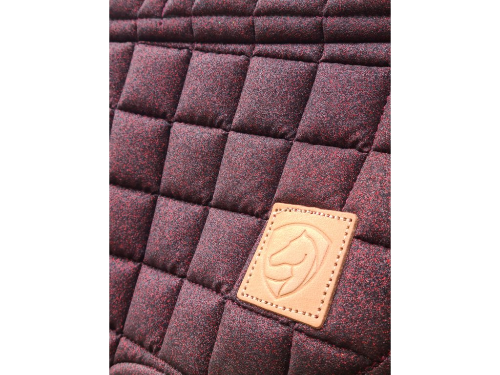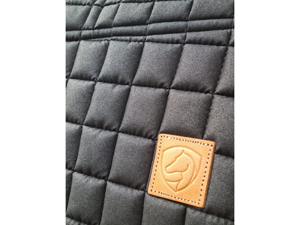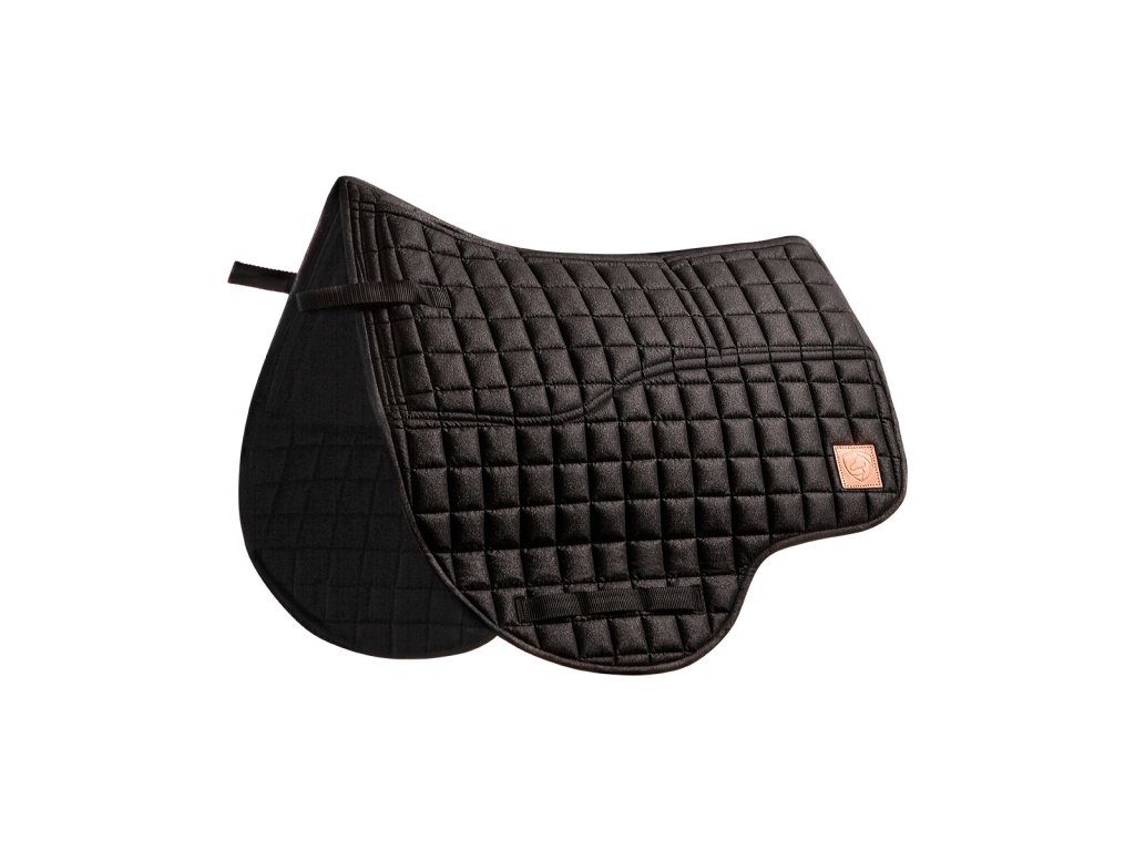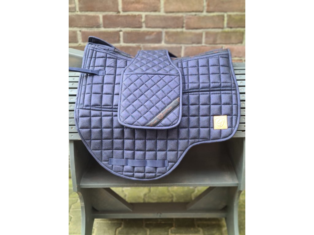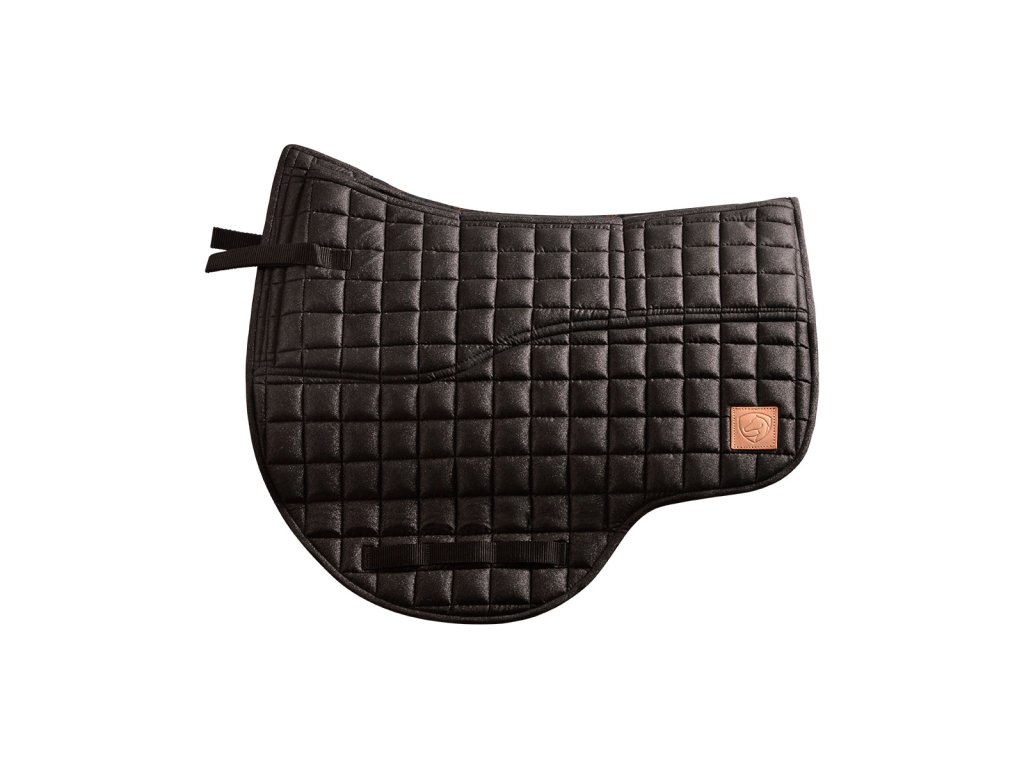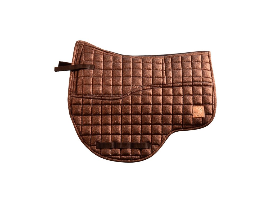 Speciální korekční dečka s kapsami v třpytivém vzhledu. Tato podložka má velkou přihrádku a 3 malé přihrádky na vložky na obou stranách páteře, všechny s plstěnými vložkami. V případě potřeby lze samozřejmě zvolit jiný typ vložky. Protože má podložka 8 kapes na vložky, existuje několik možností, jak zajistit další rozložení tlaku pomocí podložky a/nebo umístit sedlo do vyvážené polohy na koni. U sedla typu strom můžete s touto podložkou provést dočasnou korekci polohy.