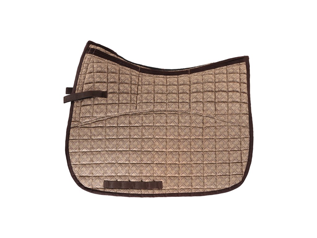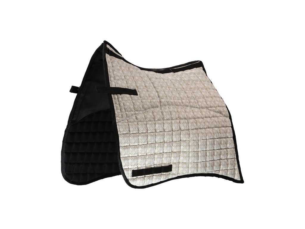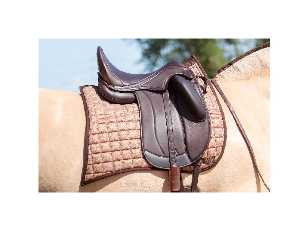 Speciální korekční dečka s kapsami v barokním a všestranném vzhledu. Tato podložka má velkou přihrádku a 3 malé přihrádky na vložky na obou stranách páteře, všechny s plstěnými vložkami. V případě potřeby lze samozřejmě zvolit jiný typ vložky. Protože má podložka 8 kapes na vložky, existuje několik možností, jak zajistit další rozložení tlaku pomocí podložky a/nebo umístit sedlo do vyvážené polohy na koni. U sedla typu strom můžete s touto podložkou provést dočasnou korekci polohy.
