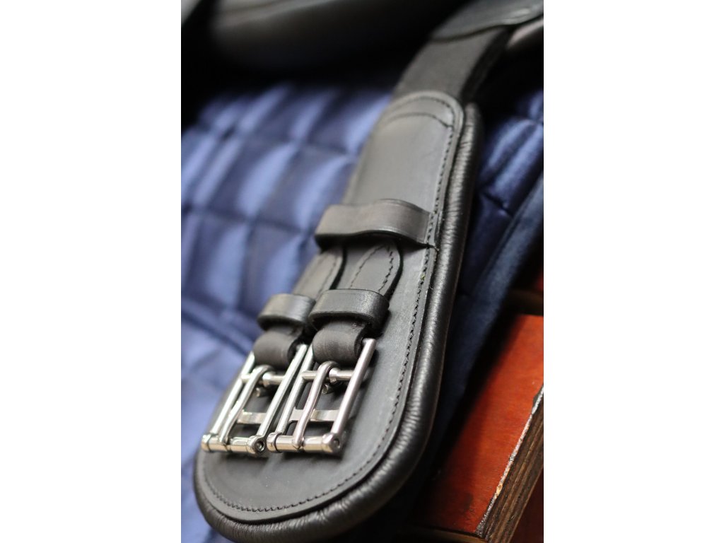 Vyrobeno z pečlivě zpracované kůže, a proto je jedinečně měkké a pružné. Tento podbřišník má středový D-kroužek pro připevnění dalších otěží a má nerezové válečkové přezky, které chrání popruhy podbřišníku před opotřebením. Všechny prvky na podbřišníku jsou stříbrné barvy.