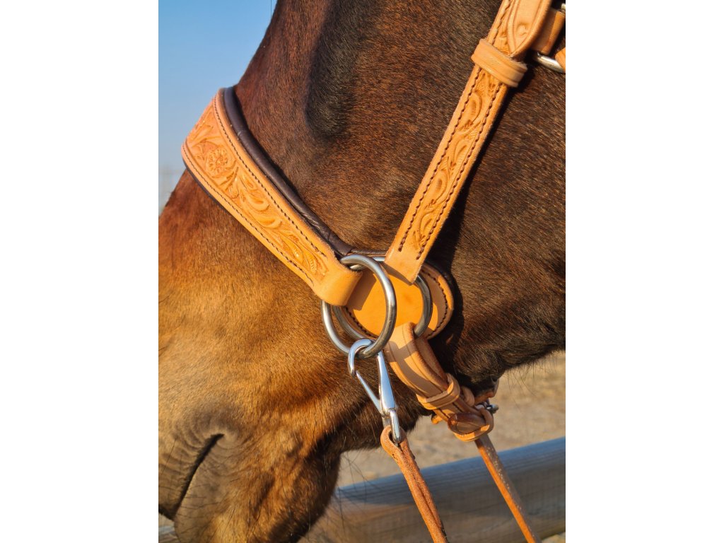 Uzdečka EDIX ED2 sidepull z kolekce „Rose“ je krásně vyrobená, anatomicky střižená a z argentinské kůže. Je navržena pro každého, kdo hledá pohodlnou anatomickou uzdečku s krásným zpracováním. Vzhled dokonale ladí s ostatními produkty z kolekce „Rose“.