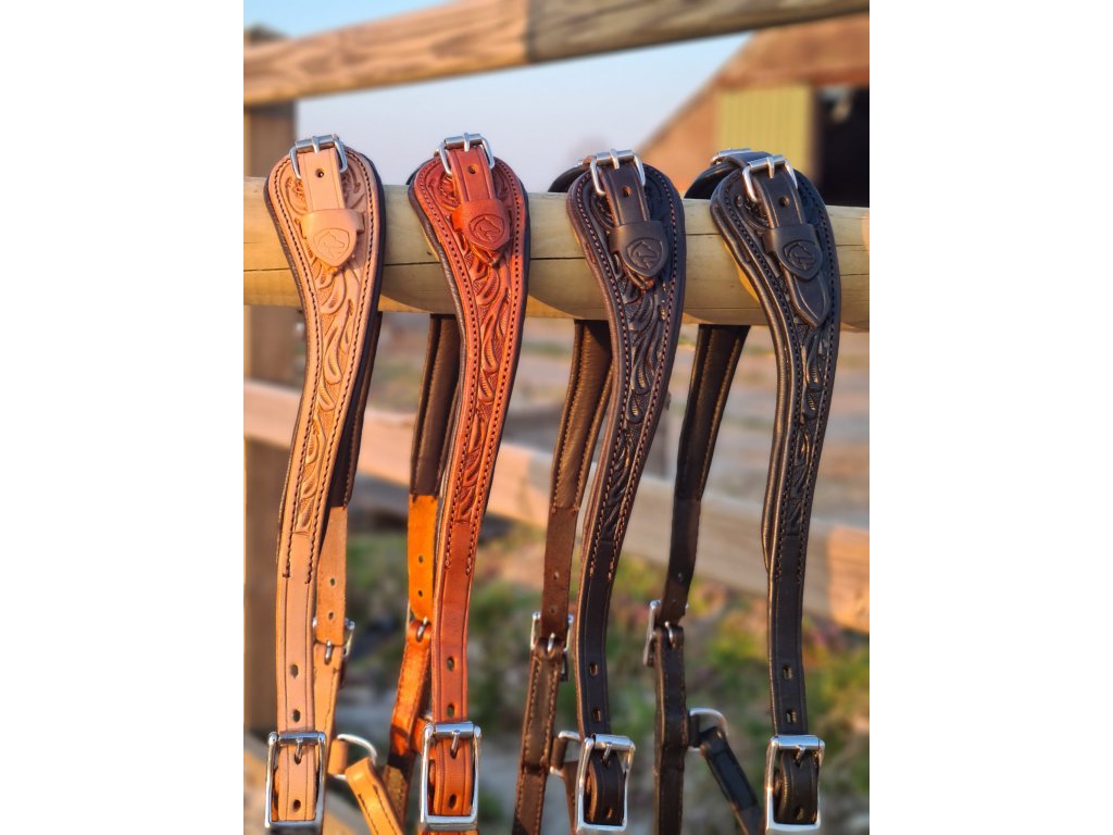 Uzdičky EDIX ED2 z kolekce „Rose“ jsou k dispozici v černé, přírodní, koňakové a hnědé barvě a ve velikostech mini-shetty, shetty, pony, cob, full a extra-full. ED2 se dodává s otěžemi z jemné kůže. Pokud váš kůň vyžaduje individuální velikost, neváhejte nás kontaktovat.