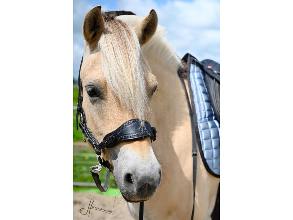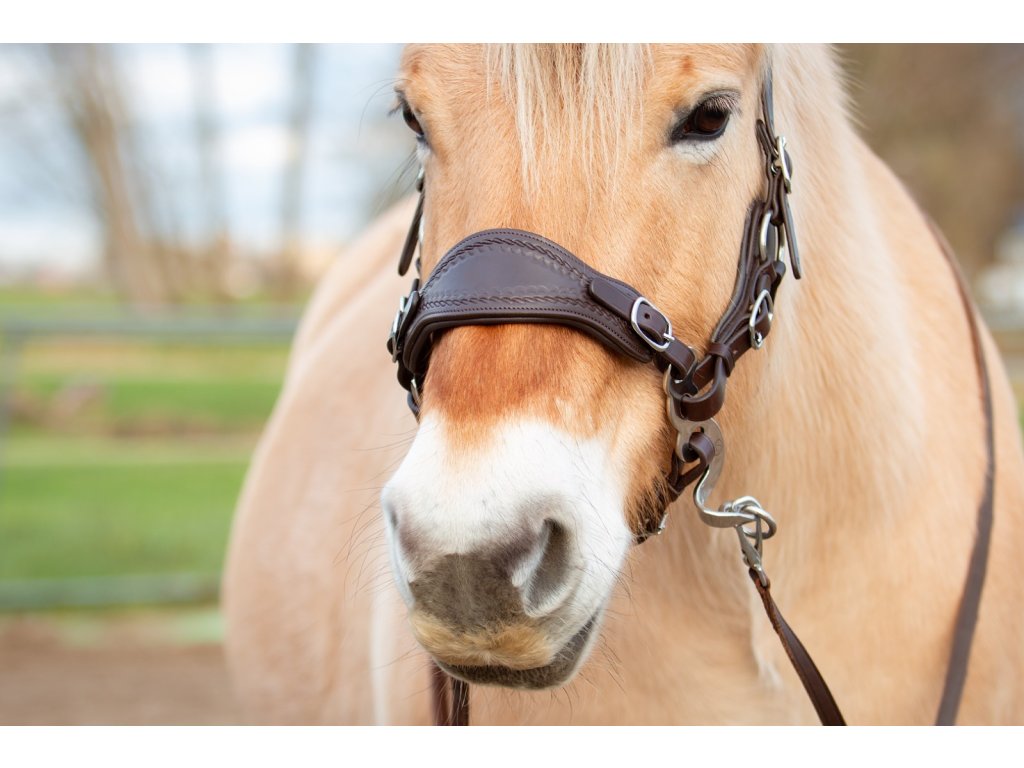 Design zaměřený na pohodlí. Nánosník je vyvinut tak, aby tlak na nos byl co nejmenší. Díky promyšlenému umístění umožňuje neomezené dýchání a vyhýbá se citlivé oblasti nosní kosti. Široký povrch zajišťuje měkké a rovnoměrné rozložení otěží. Přidané polstrování poskytuje koni extra pohodlí a měkkost.