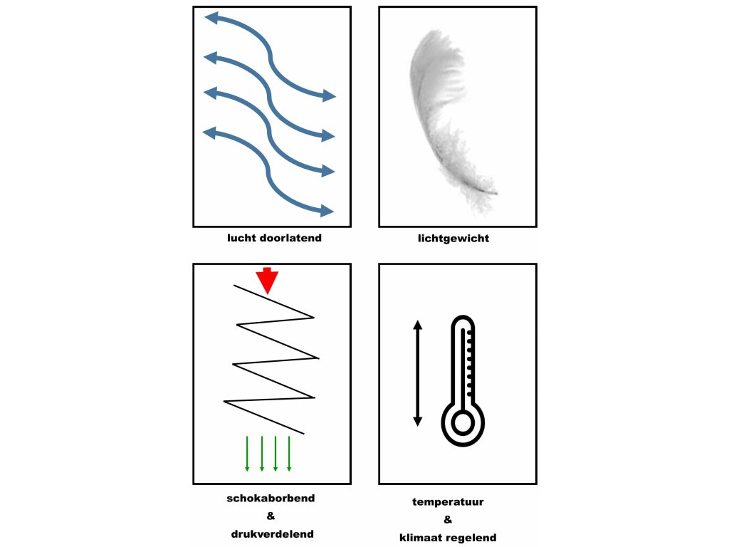 Vložky EDIX ze 3 síťovin jsou vysoce tlumivé a přizpůsobují se anatomii, ale mají schopnost vrátit se do původního stavu. Velmi kvalitní, odolný materiál s otevřenou buněčnou strukturou, který rozkládá tlak. Design včelých pláství zaručuje optimální ventilaci, a to i při zátěži, ve všech směrech. Pružnost můžete otestovat tak, že materiál vezmete mezi dvě ploché dlaně a poté na něj zatlačíte stejnou silou. Materiál se nepodvolí, neboť ho nelze zploštit. Toto zatížení je srovnatelné se zatížením, které přenášíme sedlem na hřbet koně.