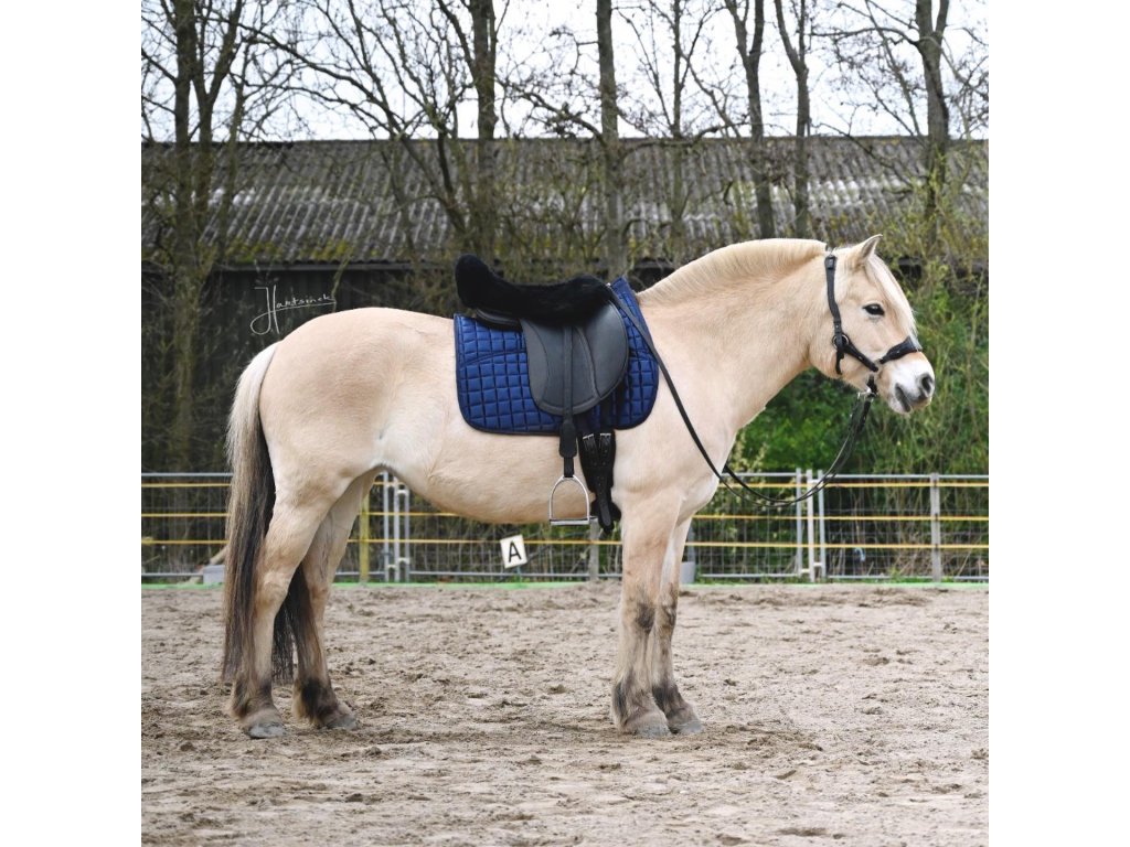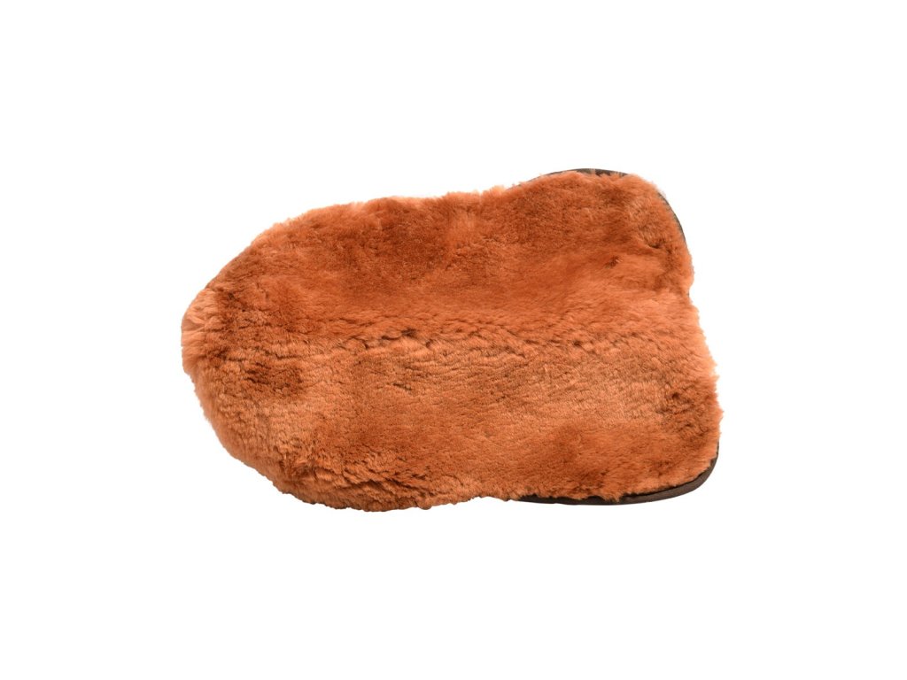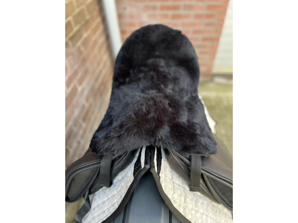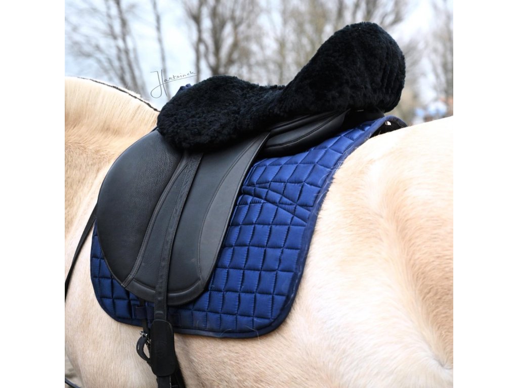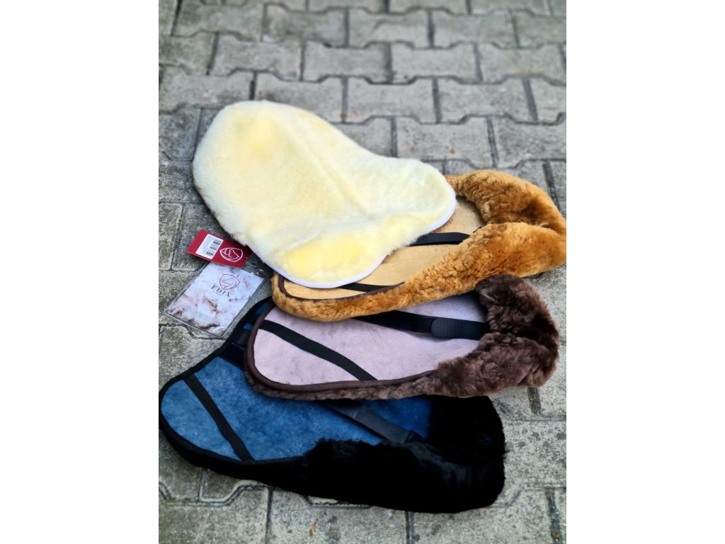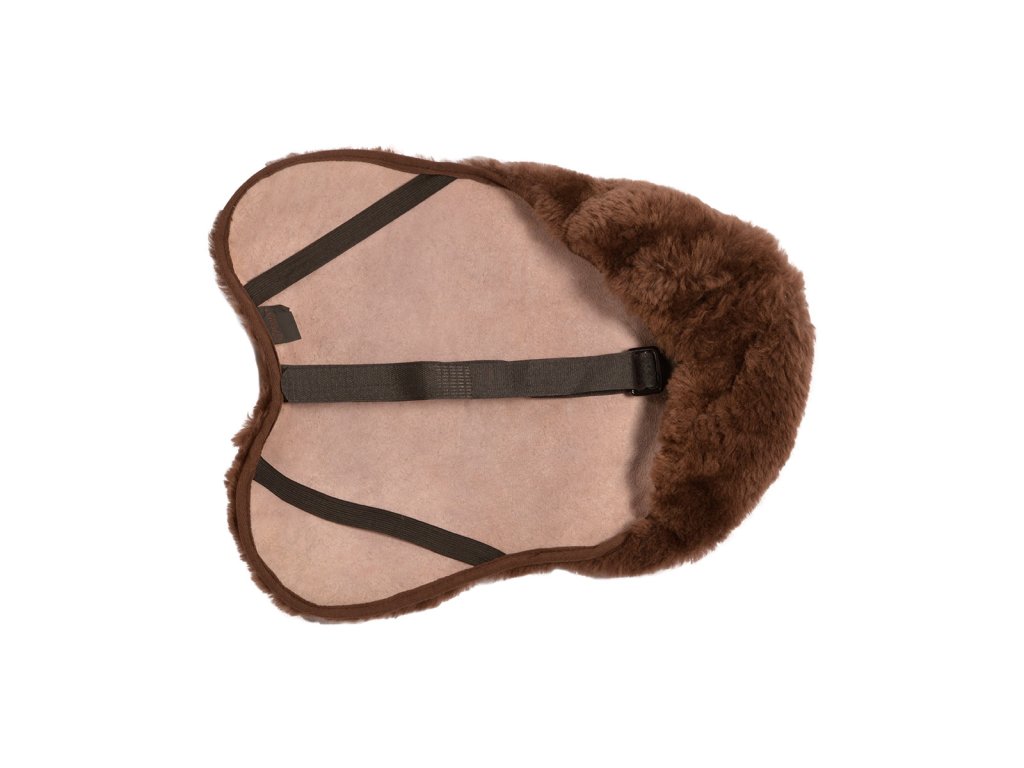 Ve spodní části sedla jsou popruhy se suchým zipem, takže kožešinu lze napnout přes sedlo a snadno ji připevnit zespodu. Na levé i pravé straně je gumička, která vede přes okraje sedla.