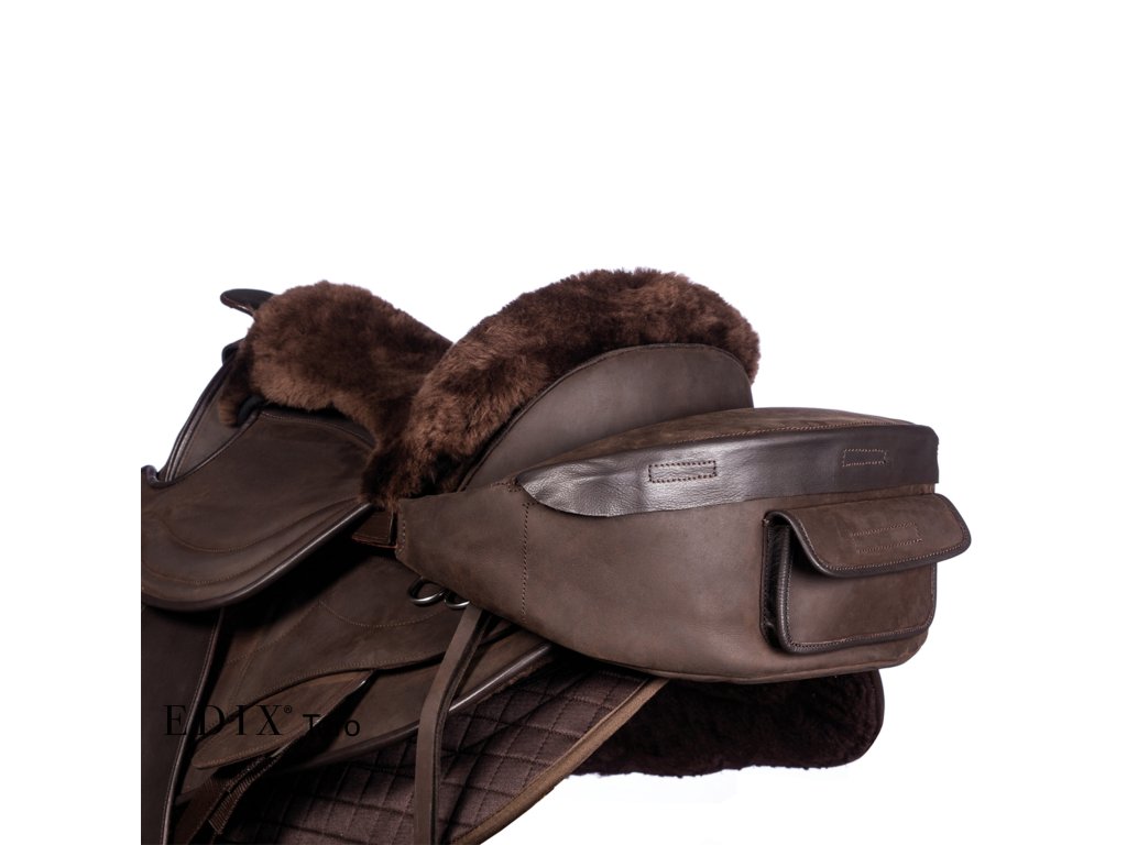 Brašny EDIX Taro se připevňují k fendrům nebo k D-kroužkům sedla pomocí kožených řemínků.