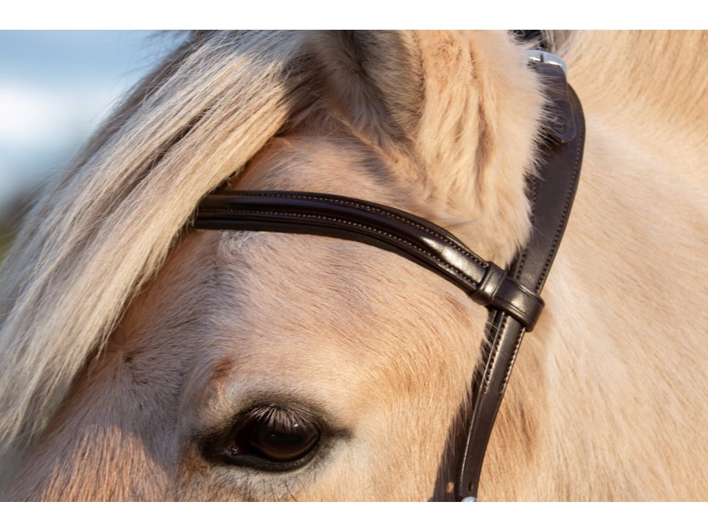 Klasická a elegantní čelenka EDIX s rafinovaným vlnitým tvarem, který pomáhá snižovat tlak na hlavu koně. Jeho design zajišťuje pohodlí i nadčasový vzhled, takže je ideální pro každodenní vyjížďky nebo soutěže. Čelenka je speciálně navržena tak, aby pasovala na běžné i speciální uzdečky EDIX. Vyrobena z luxusní italské kůže, která je měkká, ale zároveň odolná. Perfektně se hodí k uzdě, jako je EDIX ED2 Nyra nebo EDIX ED4 Classic.