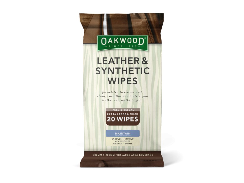 Používejte ubrousky na kůži a syntetické materiály denně nebo týdně k čištění, lesku a ochraně koženého vybavení. Pro hloubkové čištění, kondicionování a dlouhodobou péči o kožené sedlářské vybavení používejte ubrousky v kombinaci s čističi kůže Oakwood a krémy na kondicionování kůže Oakwood.