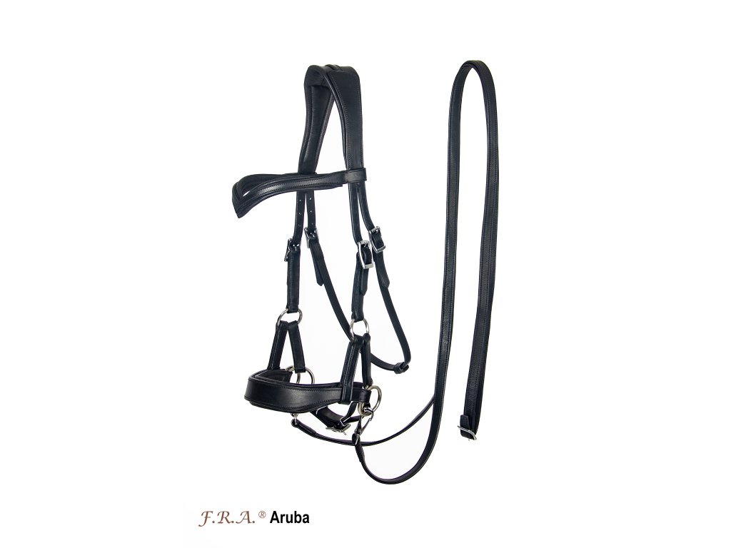 Kvalitně zpracovaná bezudidlová uzdečka na principu sidepull. Dodává se včetně otěží.