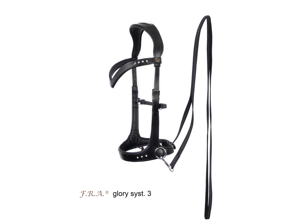 F.R.A.® Glory je anatomicky tvarovaná sidepull uzdečka. Na čelence i nánosníku má krásné zdobení z korálků. Dodává se včetně otěží s protiskluzovým opatřením. Tento typ uzdečky se také vyrábí s funkcí chincross nebo hackamore.