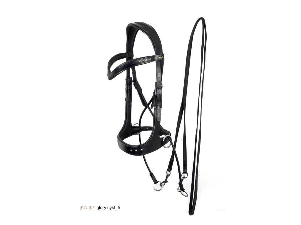 F.R.A.® Glory je bezudidlová uzdečka s funkcí chincross. Je ozdobena korálky na čelence i nánosníku. Anatomický střih samozřejmostí. Dodávána včetně otěží. Tento typ uzdečky se také vyrábí s funkcí sidepull nebo hackamore.