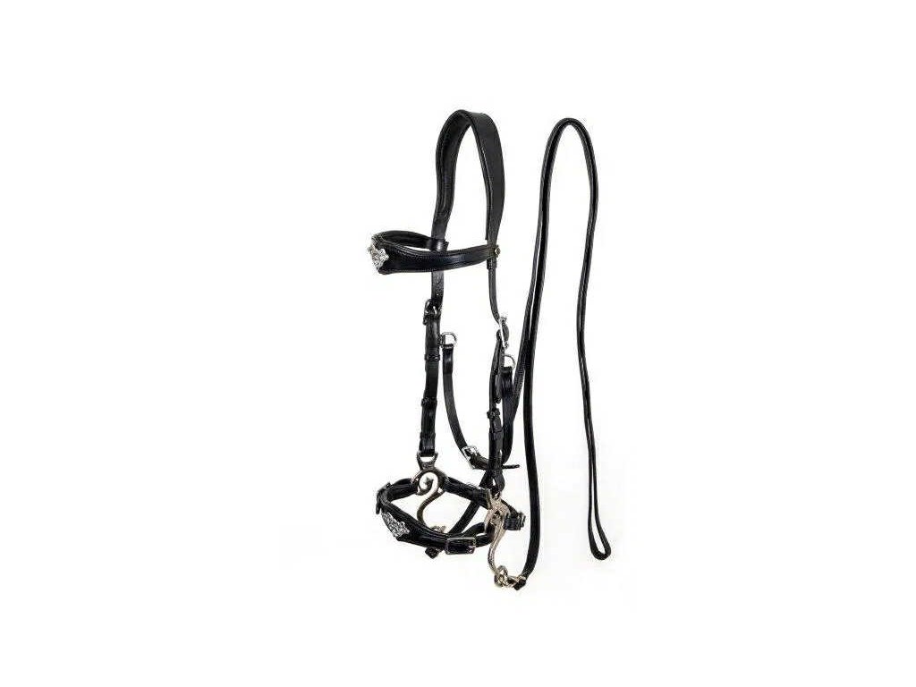 F.R.A.® Imperial je krásná barokní hackamore uzda vyrobená z vysoce kvalitní anglické kůže, se zdobením a měkkými koženými otěžemi a F.R.A. Barco hackamore rameny. Disponuje SPF = super měkká polstrovaná úprava pod krkem, vpředu a na nánosníku patentovaná výrobcem F.R.A.