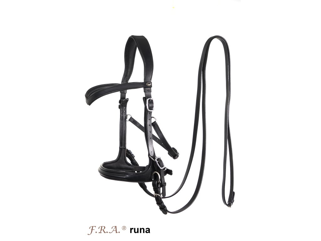 Runa je uzdečka typu „tři v jednom“ pro jezdce, kteří chtějí přejít na bezudidlovou jízdu, ale stále chtějí mít možnost jezdit s udidlem. Lze ji použít jako sidepull, s udidlem i v kombinaci. Runa je výsledkem spolupráce mezi F.R.A. a Equibitfit. Název Runa odkazuje na islandskou klisnu Géraldine Vandevenne, majitelky Equibitfit, profesionální zubařky pro koně a montérky bezudidlových uzdeček. Geraldine byla pravidelně žádána o kombinovanou uzdečku a tento nápad se u F.R.A. také ujal. S Runou můžete jezdit bez udidla (verze se sidepullem), ale také s udidlem, což je někdy nutné pro zdokonalení nebo jako přechod na zcela bezudidlovou jízdu. Existuje také možnost jezdit s dvojitou otěží. Například můžete jednu sadu otěží připevnit k hlavě (sidepull) a druhou k udidlu. Obě možnosti mohou pomoci nespočtu jezdců překonat hranici bez udidla, nebo pokud chcete svého koně pomalu zvykat na jízdu s udidlem a udržet optimální kontakt.