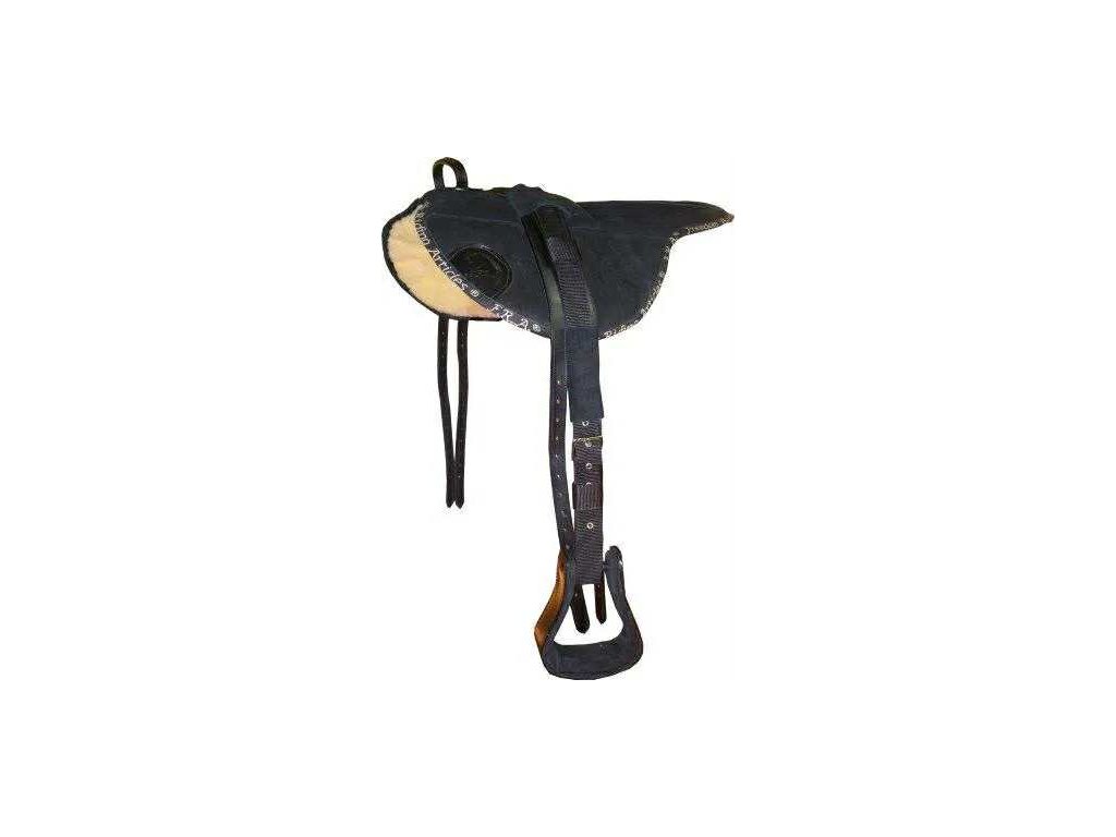 Horní strana je vyrobena z vysoce kvalitní černé nubukové kůže, spodní strana má přírodní povrchovou úpravu z měkké syntetické vlny. V oblasti kohoutku je výplň z pěny s vysokou hustotou spolu s kůží. Výplň z pěny s vysokou hustotou poskytuje jezdci měkké posezení. Pad je s rukojetí. Třmeny s koženou slouží pouze jako opora na vsazení nohou, nestoupat do nich a nepoužívat je, pad neumí rozložit váhu třmenu a vznikal by bodový tlak! Více info: blog Zdravých zvířat