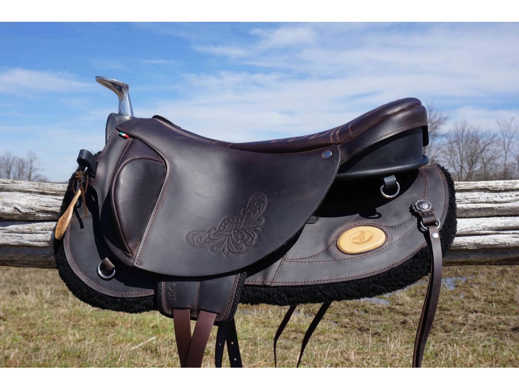 Sedlo Ghost Quilty je excelentní volba pro endurační jezdce, kteří chtějí co nejlehčí sedlo a delší třmeny pro celodenní pohodlnou jízdu. K sedlu lze volně připojit úzké westernové fendry i standardní třmenové řemeny, které lze nastavit do dvou pozic. Učitě oceníte váhu sedla, která dosahuje sotva 4 kilogramy.