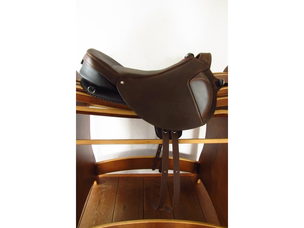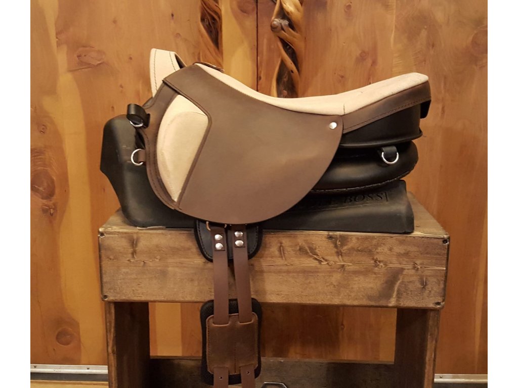 Sedlo je tvořeno ze dvou částí - ze základu (tzv. base) a z posedlí. Posedlí je uživatelsky vyměnitelné za jiné ve stejné velikosti. Když Vás jeden model omrzí, můžete si vyměnit pouze posedlí a získáte za nižší cenu naprosto jiný model.Posedlí je možné zvolit i dvojbarevné, nebo jen z pravého beránka, popusťe uzdu své fantazii. Barevné možnosti a typy kůže naleznete zde. Zespodu je tzv. panelový systém (podobně jako u Hidalgo sedel).Panely jsou tvořeny z měkkého sympatexu (je možné zvolit i beránkové) a mají otevíratelné kapsy s výplněmi.