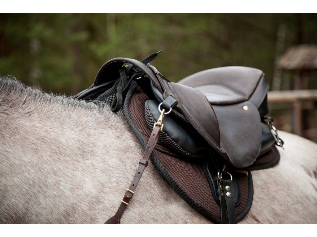 Řemeny podbřišníku jsou z příjemně měkkého biothanu a opatřeny krytkami tak, aby koni nepůsobily diskomfort(nejsou v ceně sedla, možné je doobejdnat). Navíc vám luxusně poslouží i možnost podbřišník posouvat dle dispozice koně (dopředu-dozadu).