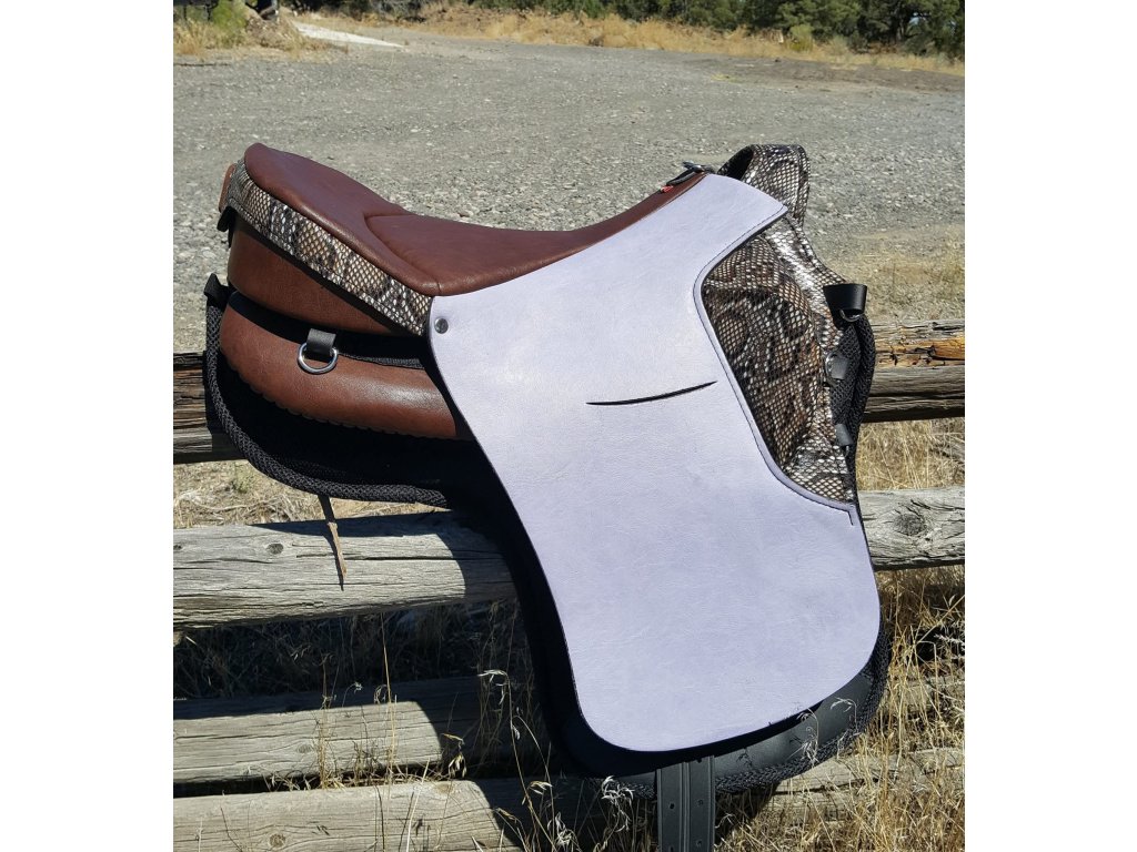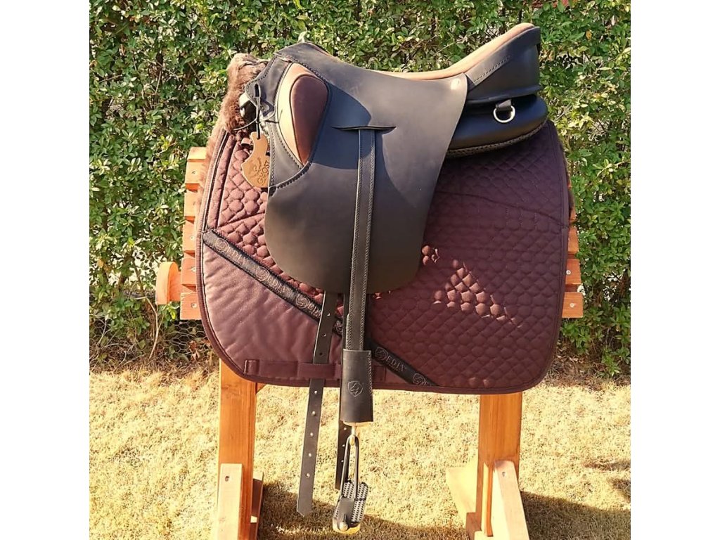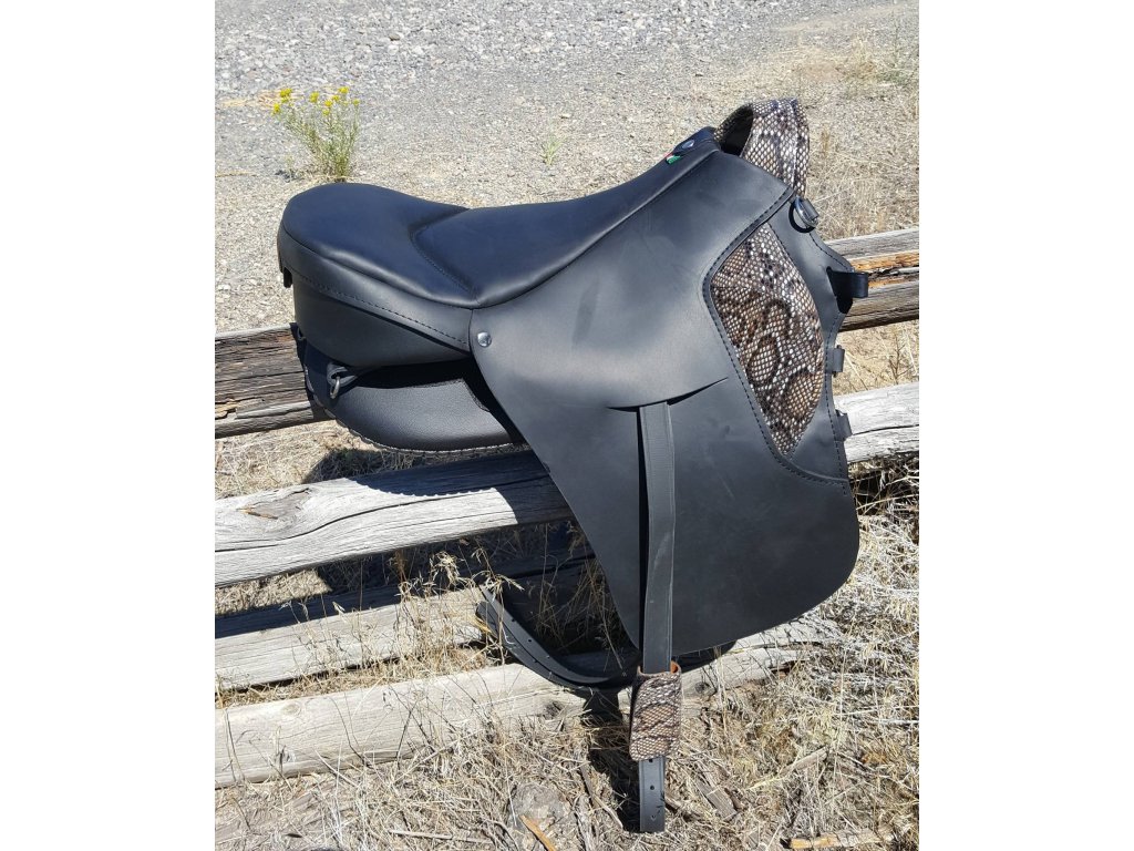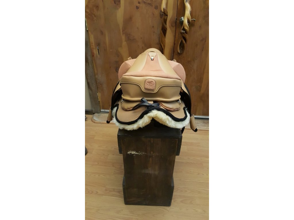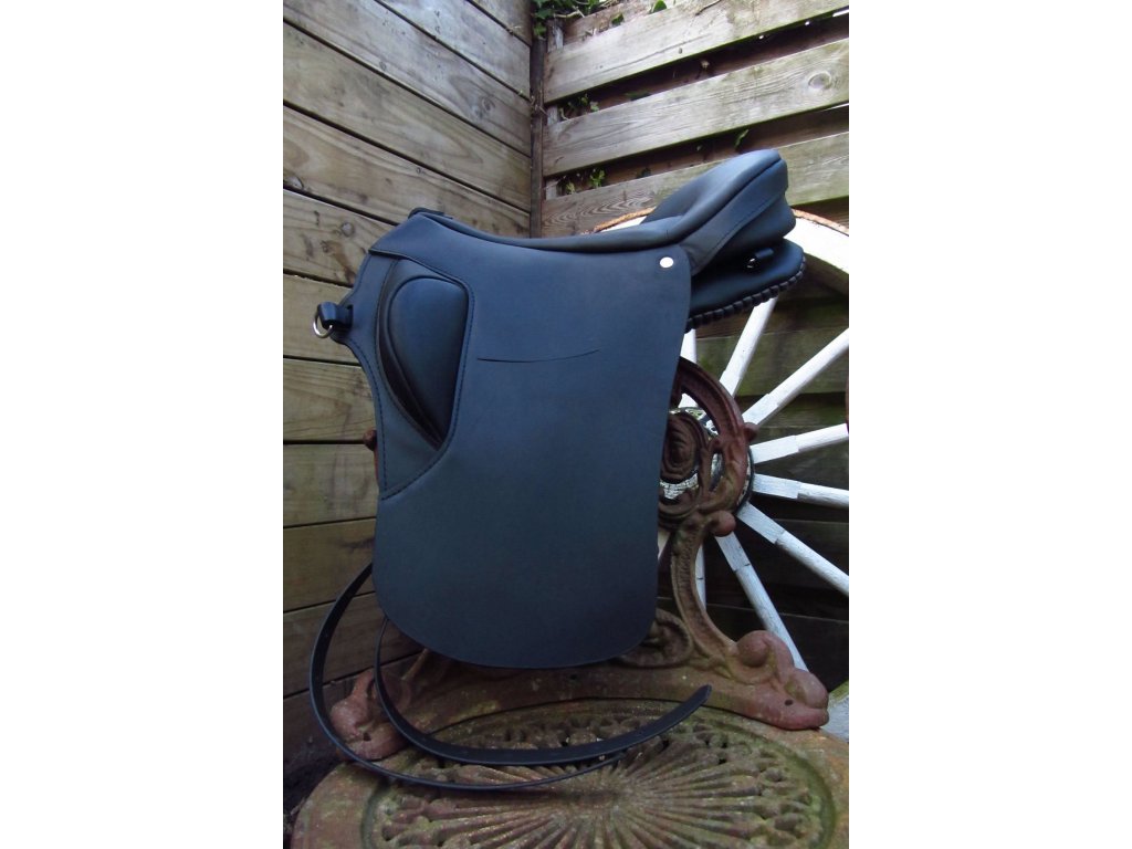 Sedlo je tvořeno ze dvou částí - ze základu (tzv. base) a z posedlí. Posedlí je uživatelsky vyměnitelné za jiné ve stejné velikosti. Když Vás jeden model omrzí, můžete si vyměnit pouze posedlí a získáte za nižší cenu naprosto jiný model. Posedlí je možné zvolit i dvojbarevné, nebo jen z pravého beránka, popusťe uzdu své fantazii. Barevné možnosti a typy kůže naleznete zde. Zespodu je tzv. panelový systém (podobně jako u Hidalgo sedel).Panely jsou tvořeny z měkkého sympatexu (je možné zvolit i beránkové) a mají otevíratelné kapsy s výplněmi.