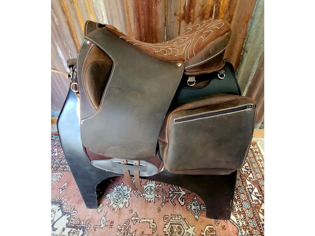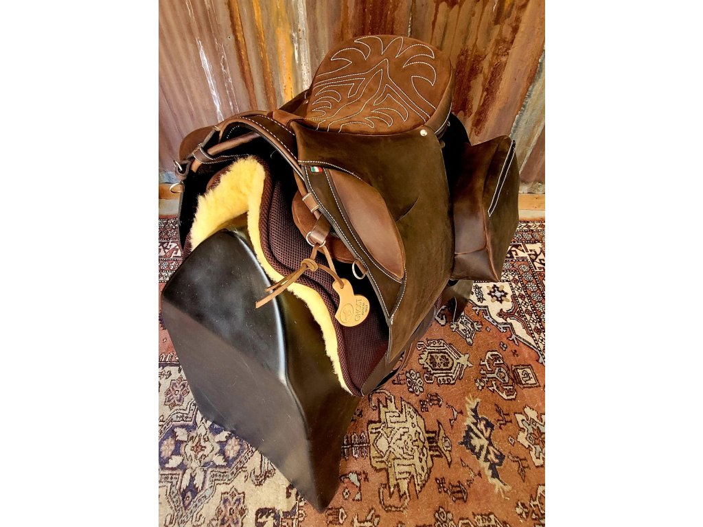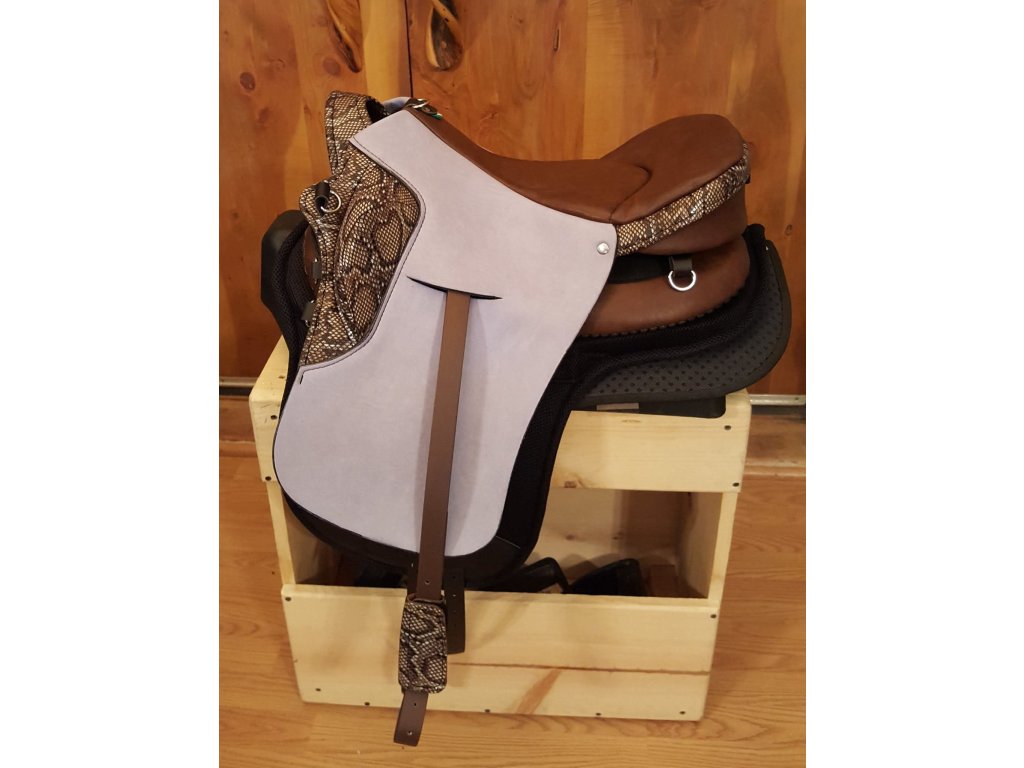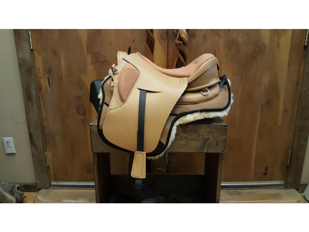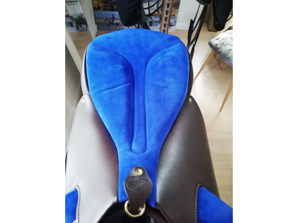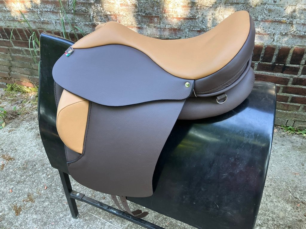 Sedlo je tvořeno ze dvou částí - ze základu (tzv. base) a z posedlí. Posedlí je uživatelsky vyměnitelné za jiné ve stejné velikosti. Když Vás jeden model omrzí, můžete si vyměnit pouze posedlí a získáte za nižší cenu naprosto jiný model. Posedlí je možné zvolit i dvojbarevné, nebo jen z pravého beránka, popusťe uzdu své fantazii. Barevné možnosti a typy kůže naleznete zde. Zespodu je tzv. panelový systém (podobně jako u Hidalgo sedel).Panely jsou tvořeny z měkkého sympatexu (je možné zvolit i beránkové) a mají otevíratelné kapsy s výplněmi.