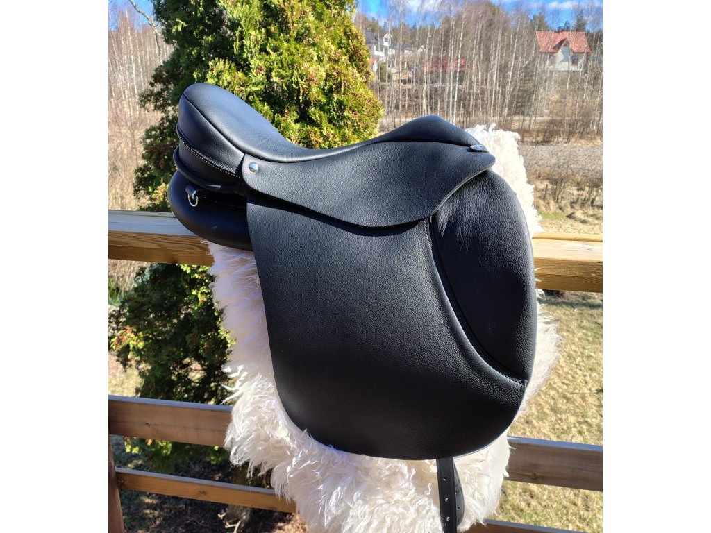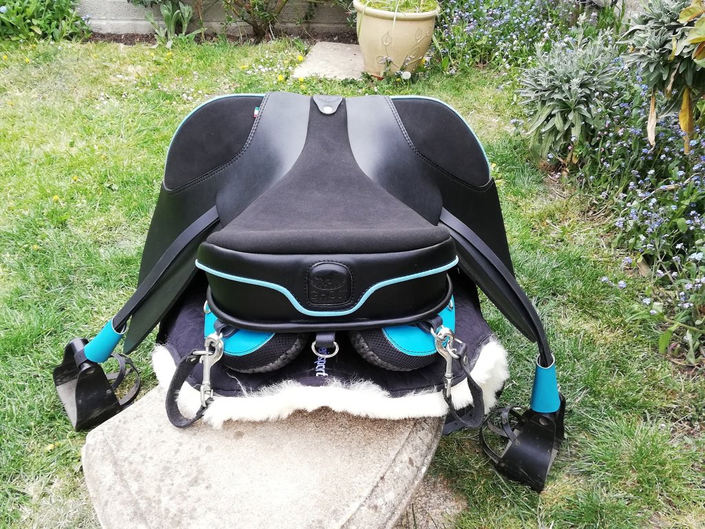 Sedlo je tvořeno ze dvou částí - ze základu (tzv. base) a z posedlí. Posedlí je uživatelsky vyměnitelné za jiné ve stejné velikosti. Když Vás jeden model omrzí, můžete si vyměnit pouze posedlí a získáte za nižší cenu naprosto jiný model.Posedlí je možné zvolit i dvojbarevné (vícebarevné), nebo jen z pravého beránka, popusťe uzdu své fantazii. Barevné možnosti a typy kůže naleznete zde. Zespodu je tzv. panelový systém (podobně jako u Hidalgo sedel). Panely jsou tvořeny z měkkého sympatexu (je možné zvolit i beránkové) a mají otevíratelné kapsy s výplněmi.