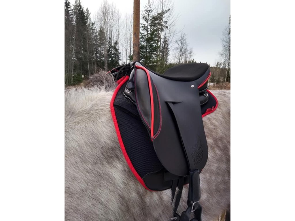 Sedlo se dodává bez třmenů, třmenových řemenů a podbřišníku. V