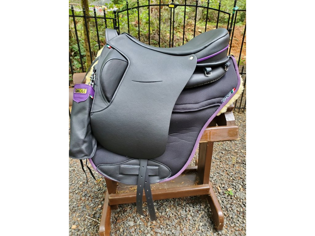 Sedlo Ghost Veneto je excelentní volba pro drezurní a endurační jezdce, kteří chtějí co nejlehčí sedlo a delší třmeny. K sedlu lze libovolně připojit standardní třmenové řemeny, které lze nastavit do dvou pozic. Učitě oceníte váhu sedla, která dosahuje sotva 4 kilogramy.