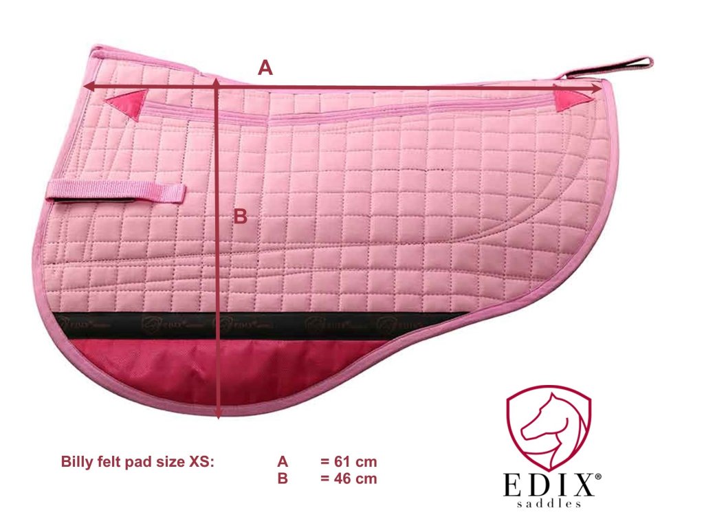 EDIX Billy je vyroben s využitím EDIX® MPDS (Multiple Pressure Distribution System), vícevrstvé struktury, která zajišťuje rovnoměrné rozložení tlaku a optimální volnost páteře pro poníka. Sedlo je vyrobeno výhradně ze syntetických materiálů, takže je plně veganské. Sedlo je potaženo semišovou látkou pro extra přilnavost a pohodlí.