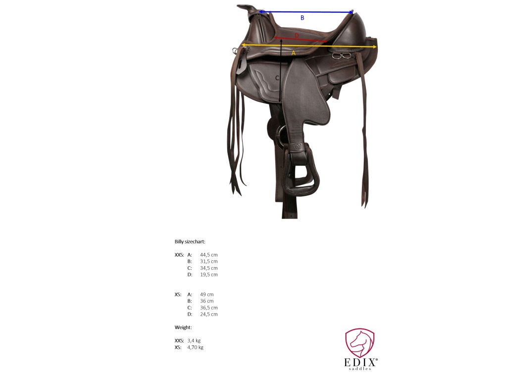 EDIX Billy je lehké westernové sedlo speciálně navržené pro mladé jezdce a jejich poníky. Díky svému westernovému designu, bočnicím a pohodlné, flexibilní konstrukci nabízí toto sedlo bezpečný a přirozený sed pro děti. Měkká povrchová úprava a použití odolných materiálů činí sedlo Billy ideálním pro začínající a rekreační mladé jezdce.