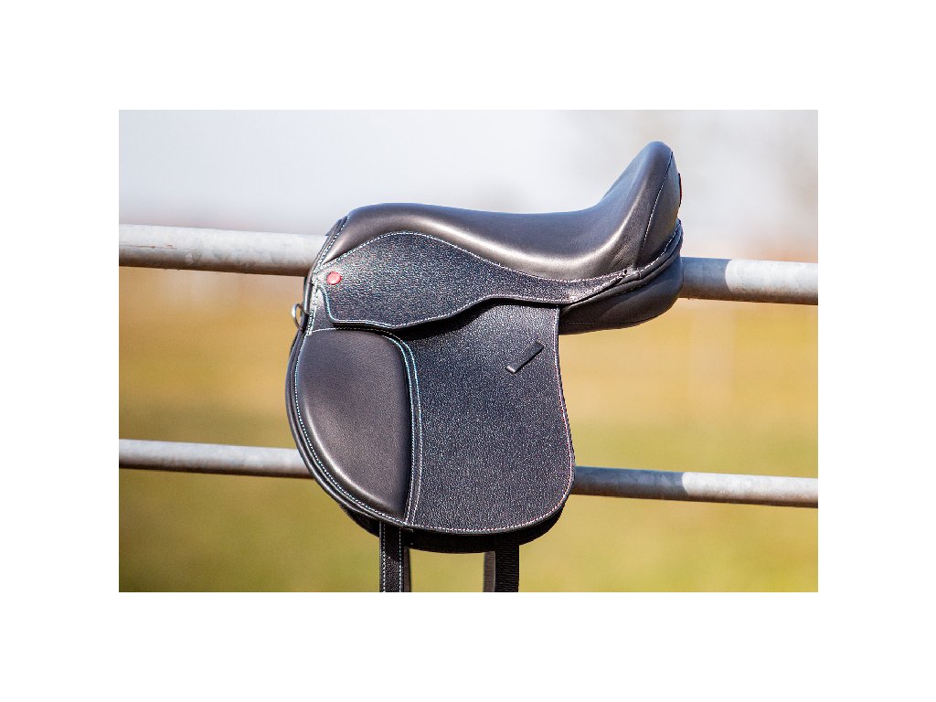 - Vzhled klasického drezurního sedla s větším pohodlím