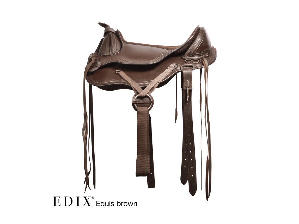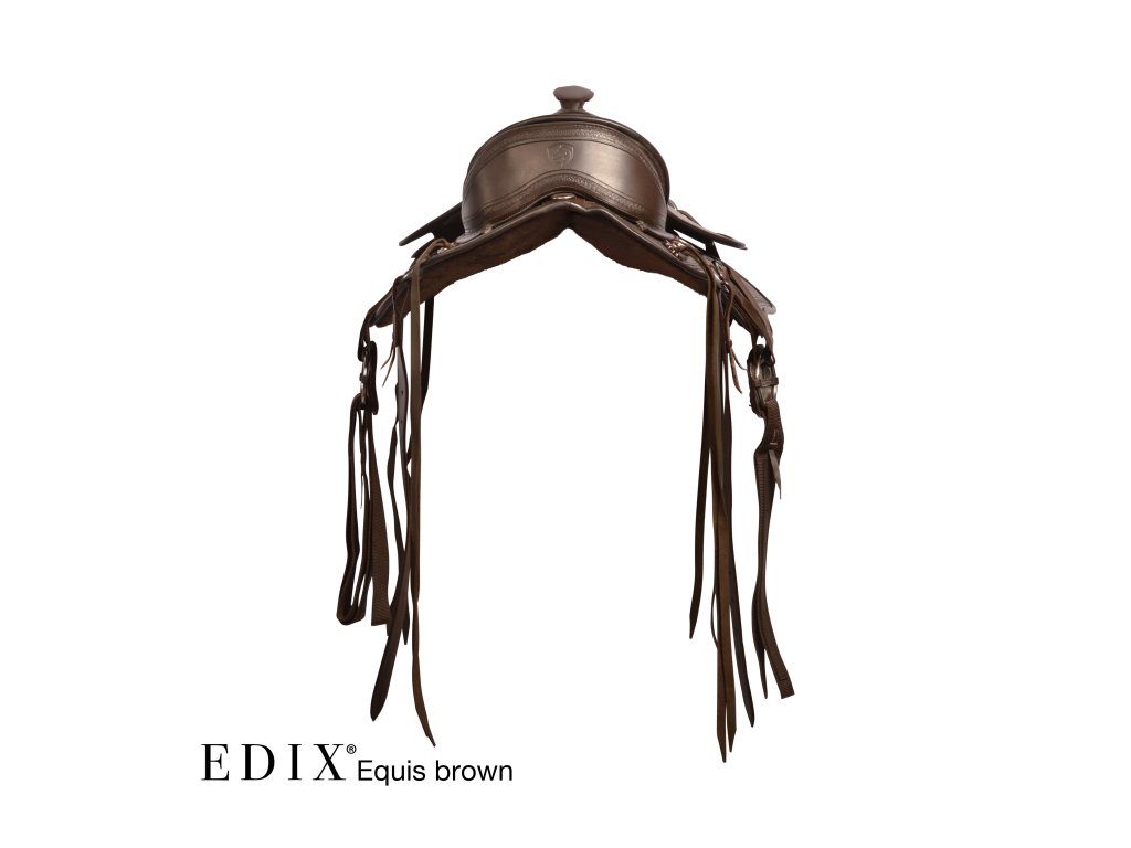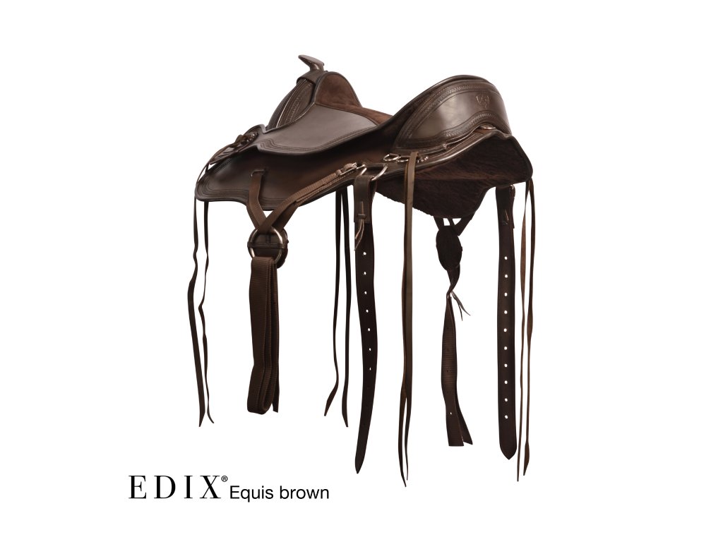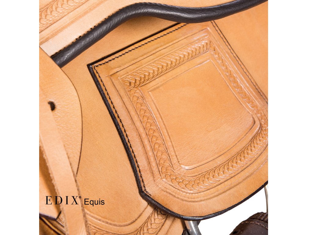 Krásně ručně zdobené kompletně bezkostrové sedlo s vyměnitelnou komorou. Je vyrobeno ze super pevné buvolí kůže s kontrastním semišovým posedlím. Jezdci nabízí hluboký sedl a koni optimální volnost pohybu, díky čemuž je sedlo skvělé pro dlouhé uvolněné jízdy i pro lehké disciplíny westernového ježdění. V kombinaci s dečkou EDIX vyrobenou z australské merino ovčí kůže je zárukou ještě pohodlnějšího zážitku. Sedlo EDIX Equis je vybaveno kruhovým Y-podbřišníkovým systémem EDIX, třírohovým spojením, které umožňuje působení sil podbřišníku na větší plochu sedla, protože spojení jsou k sedlu připevněna vpředu a vzadu, nikoli uprostřed. Navíc lze polohu samotného podbřišníku nastavit dopředu nebo dozadu.