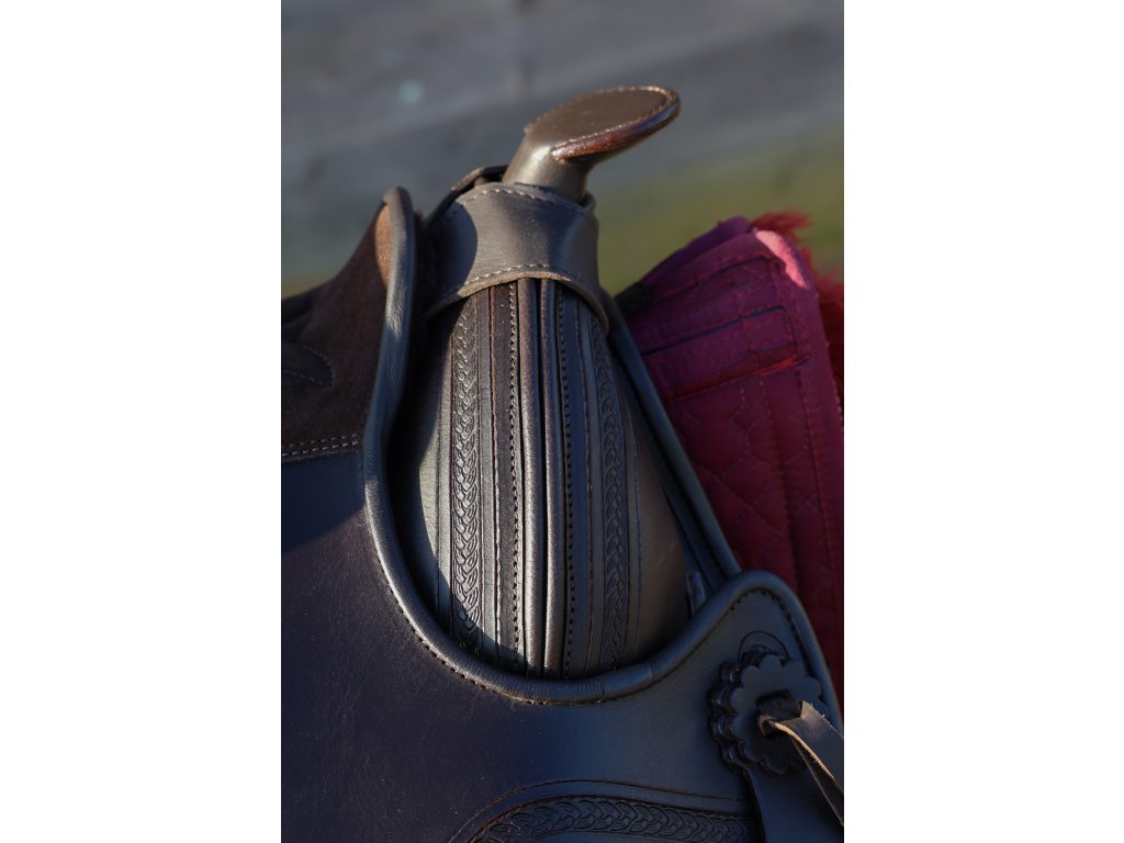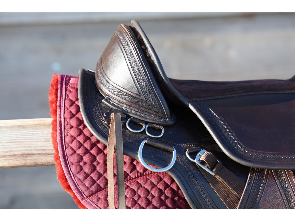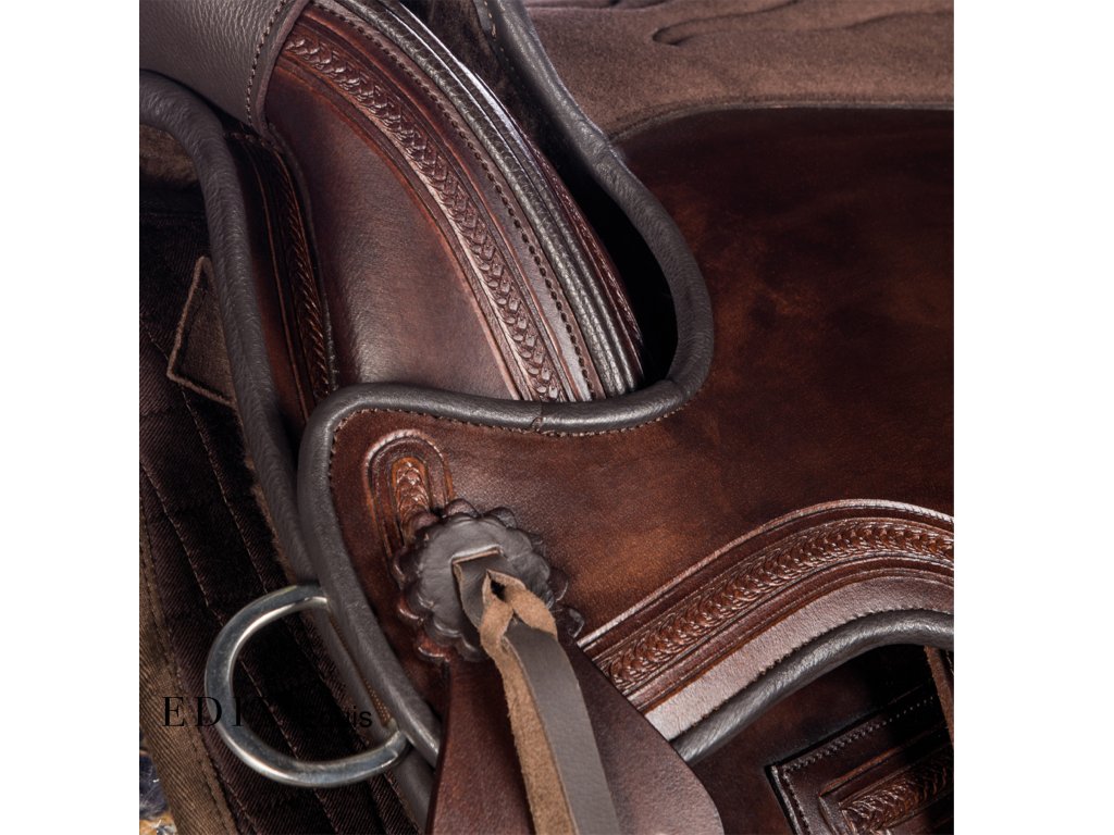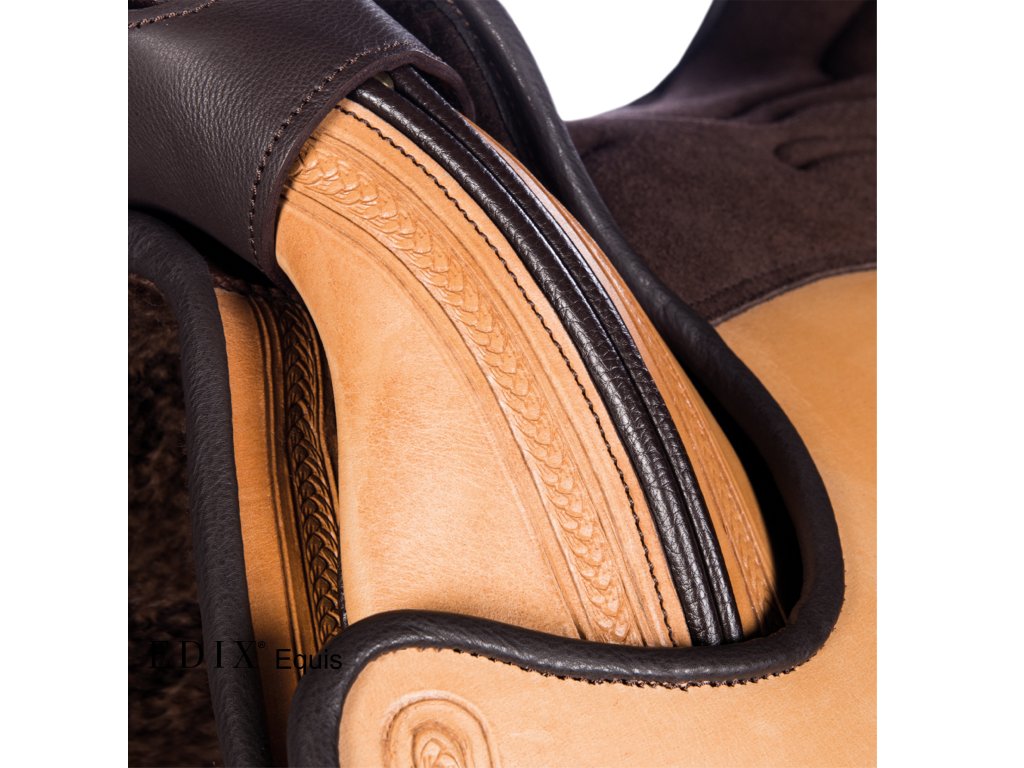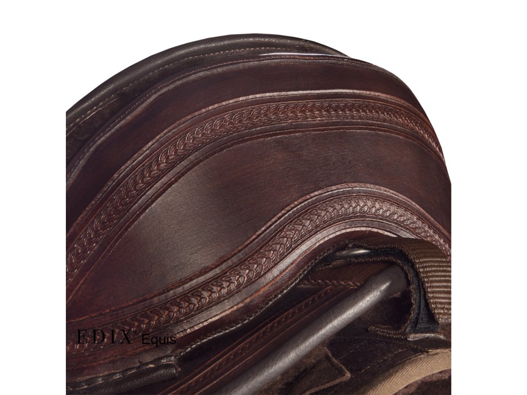 Krásně ručně zdobené kompletně bezkostrové sedlo s vyměnitelnou komorou. Je vyrobeno ze super pevné buvolí kůže s kontrastním semišovým posedlím. Jezdci nabízí hluboký sedl a koni optimální volnost pohybu, díky čemuž je sedlo skvělé pro dlouhé uvolněné jízdy i pro lehké disciplíny westernového ježdění. V kombinaci s dečkou EDIX vyrobenou z australské merino ovčí kůže je zárukou ještě pohodlnějšího zážitku. Sedlo EDIX Equis je vybaveno kruhovým Y-podbřišníkovým systémem EDIX, třírohovým spojením, které umožňuje působení sil podbřišníku na větší plochu sedla, protože spojení jsou k sedlu připevněna vpředu a vzadu, nikoli uprostřed. Navíc lze polohu samotného podbřišníku nastavit dopředu nebo dozadu.