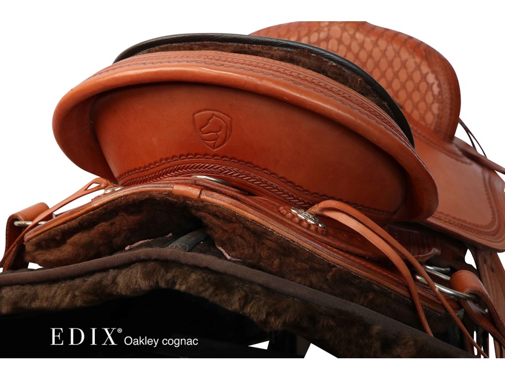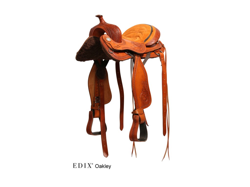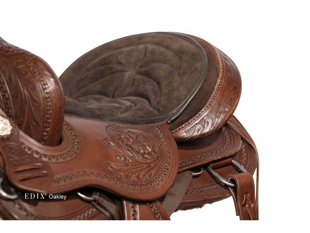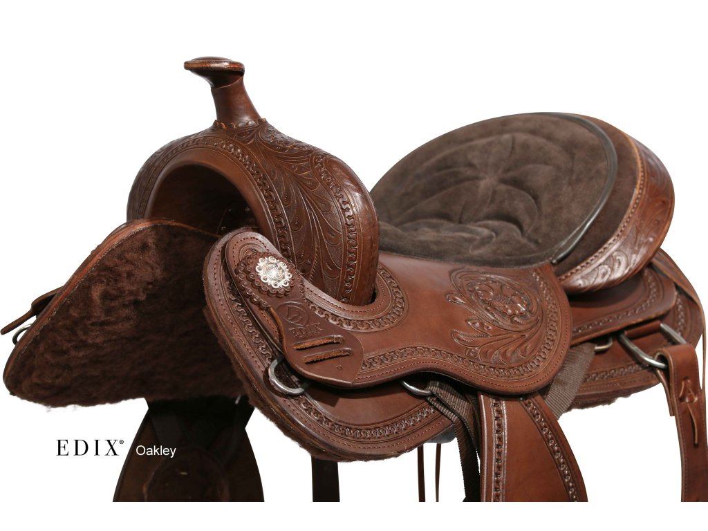 Sedlo Oakley je vybaveno podbřišníkem EDIX® circle-Y, který rozkládá tlak podbřišníku na větší část sedla, protože spoje jsou připevněny k přední a zadní části sedla, nikoli uprostřed. Navíc lze polohu samotného podbřišníku nastavit dopředu nebo dozadu. Pozornost se tak bude soustředit pouze na hmotnost vyplývající z interakce jezdce.