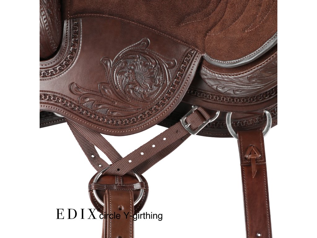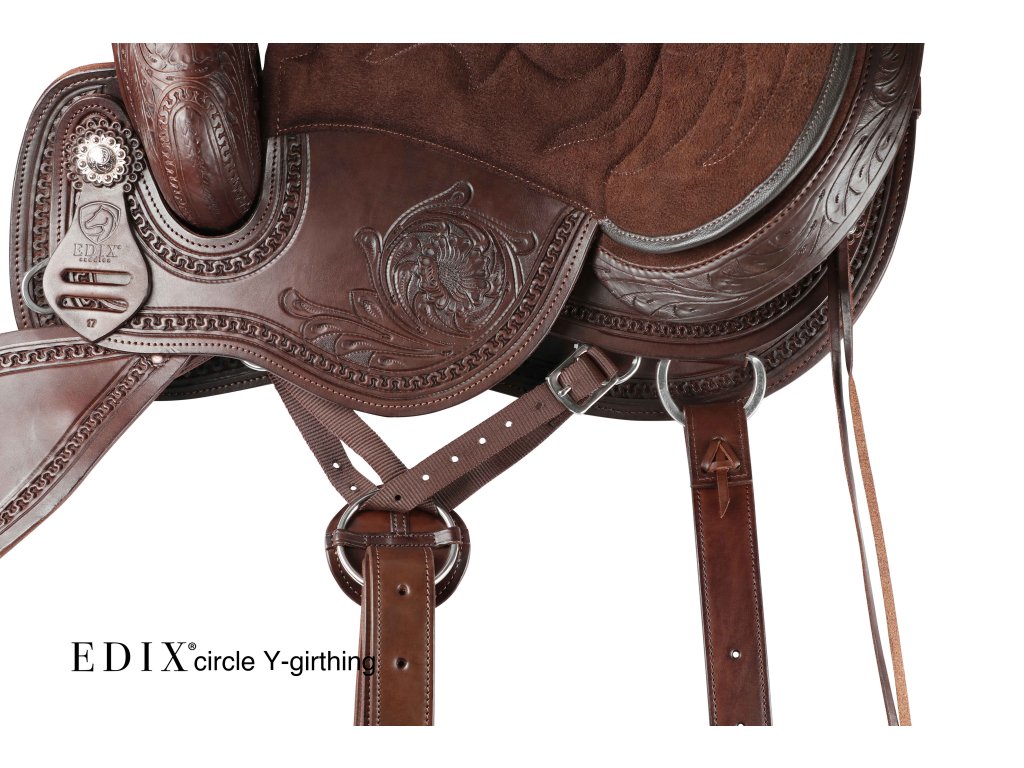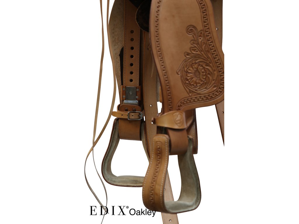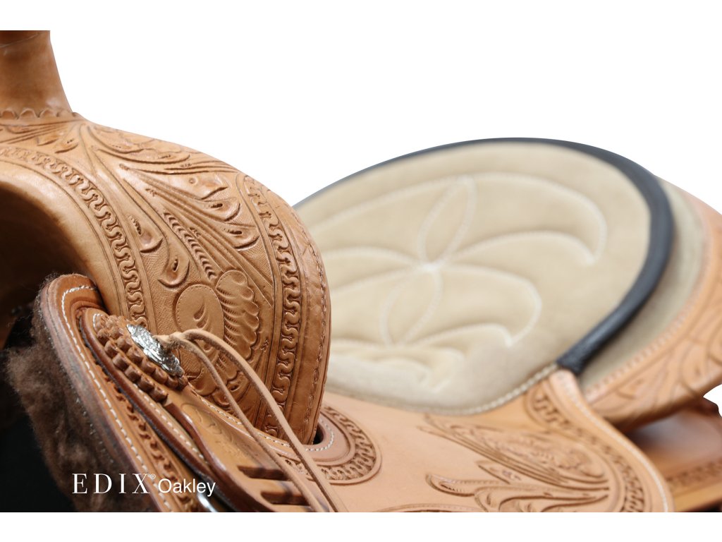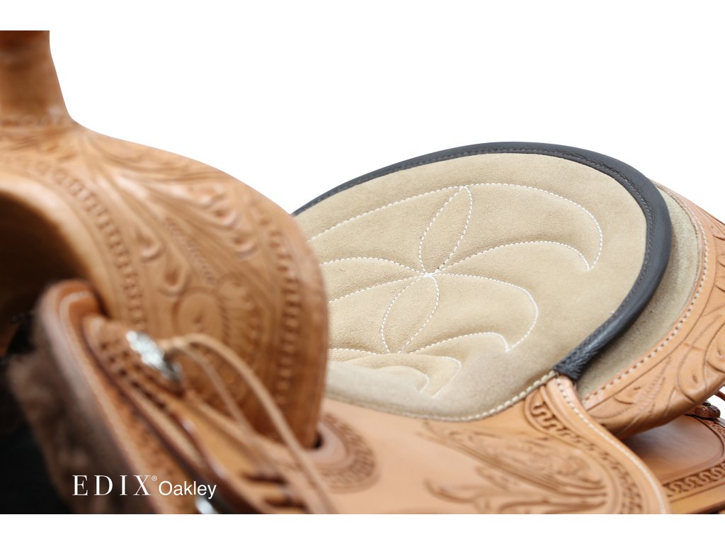 Sedlo Oakley je vybaveno podbřišníkem EDIX® circle-Y, který rozkládá tlak podbřišníku na větší část sedla, protože spoje jsou připevněny k přední a zadní části sedla, nikoli uprostřed. Navíc lze polohu samotného podbřišníku nastavit dopředu nebo dozadu. Pozornost se tak bude soustředit pouze na hmotnost vyplývající z interakce jezdce.