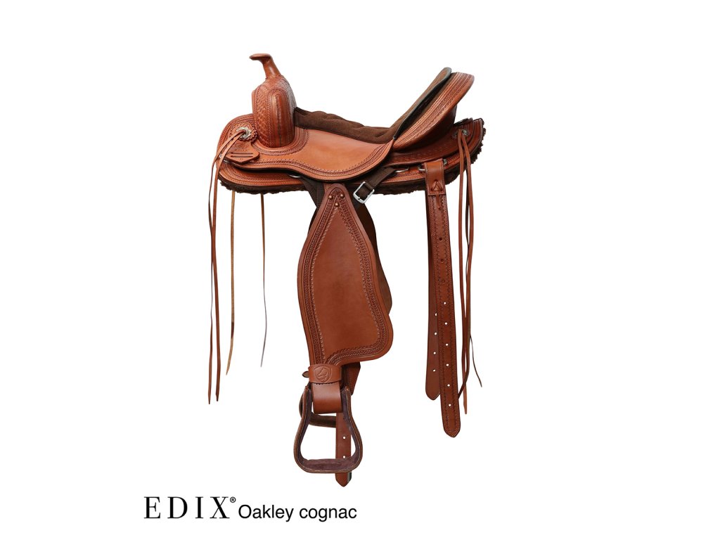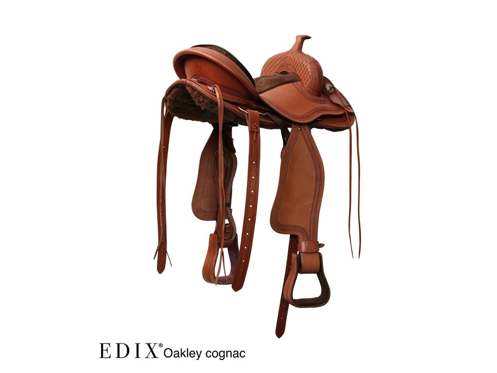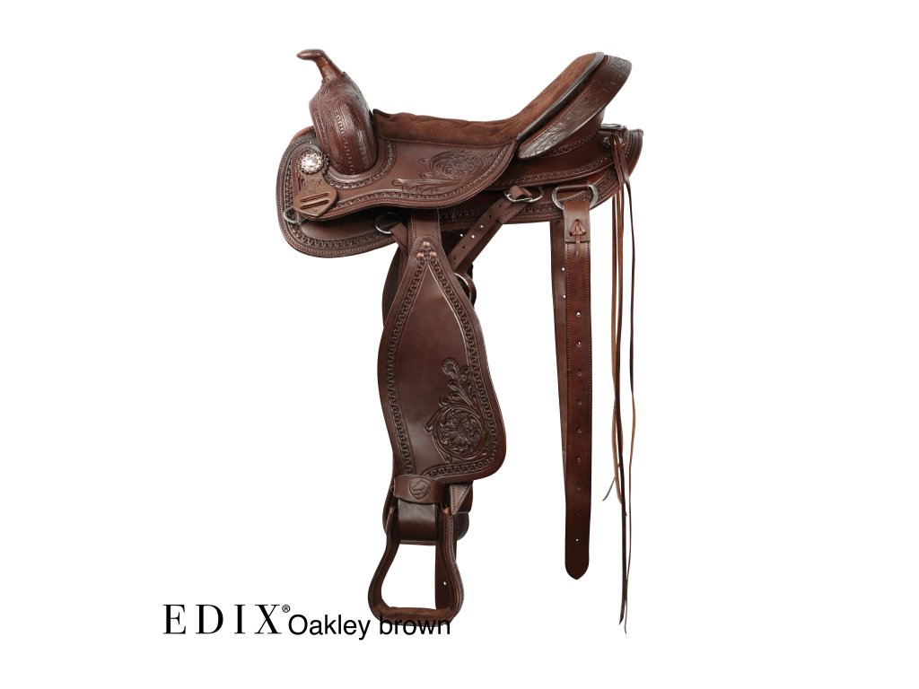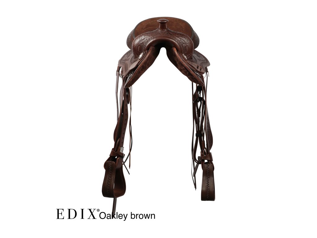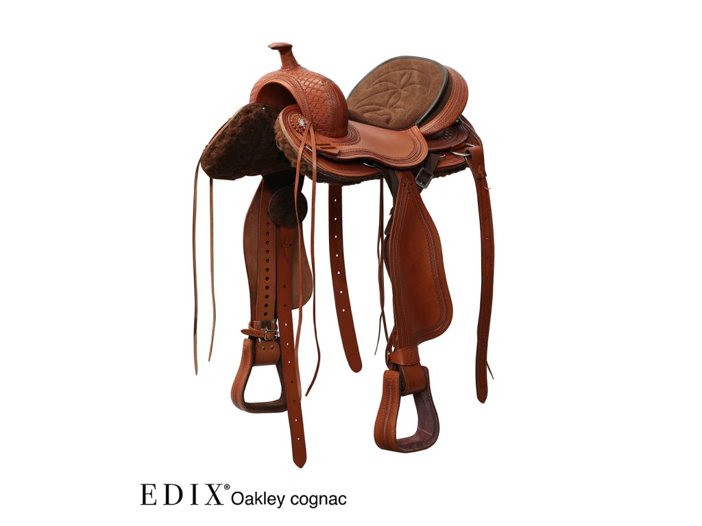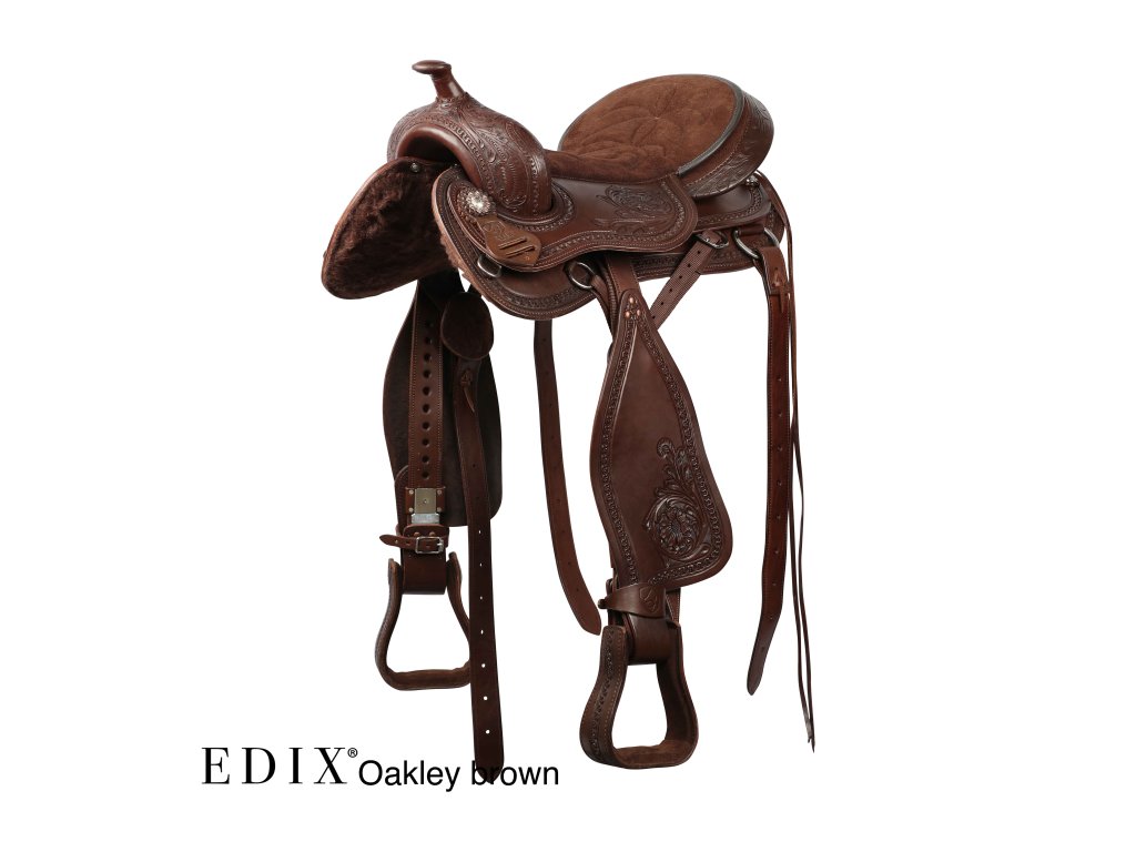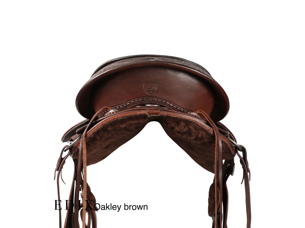 EDIX® Oakley je k dispozici v hnědé barvě s hnědou nebo přírodní kůží s přírodním posedlím a ve velikostech S (16"), M (17") a L (18"). Varianty tohoto sedla vyrobené na míru mají dodací lhůtu 8 týdnů.