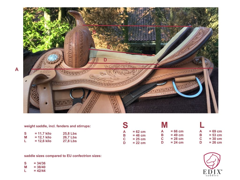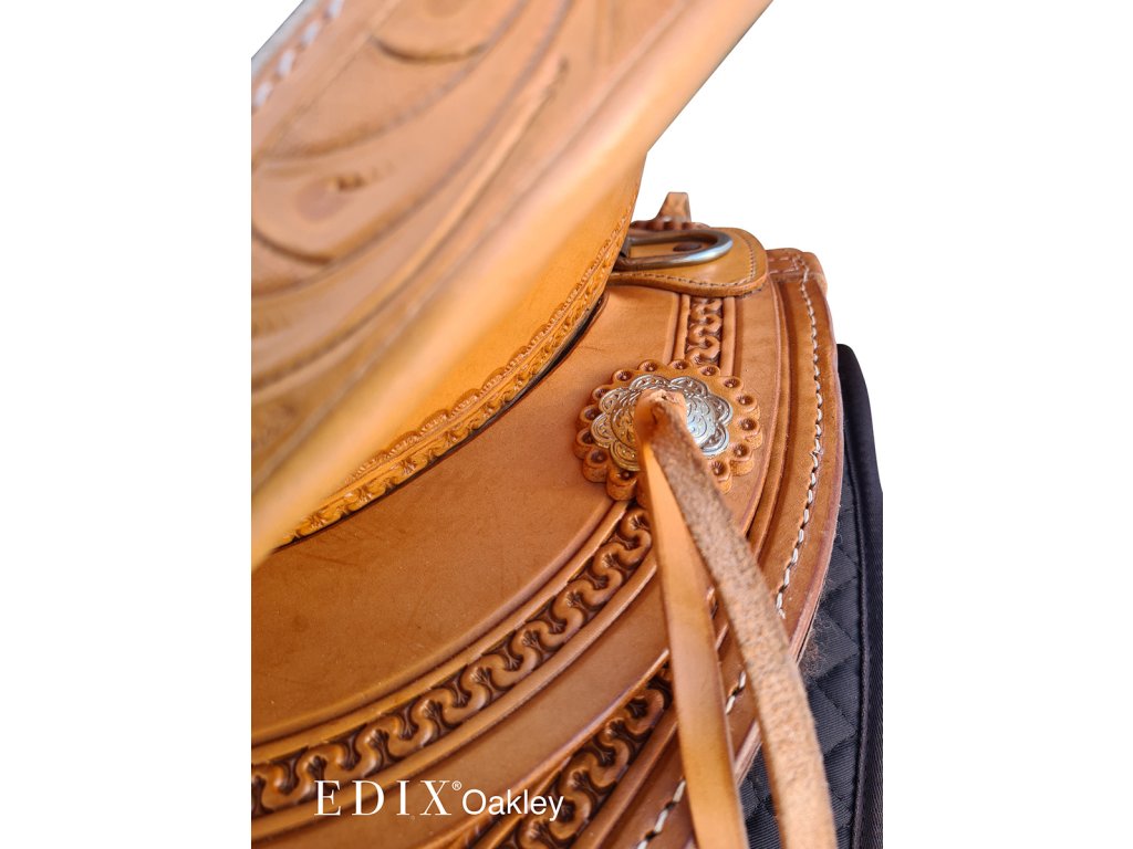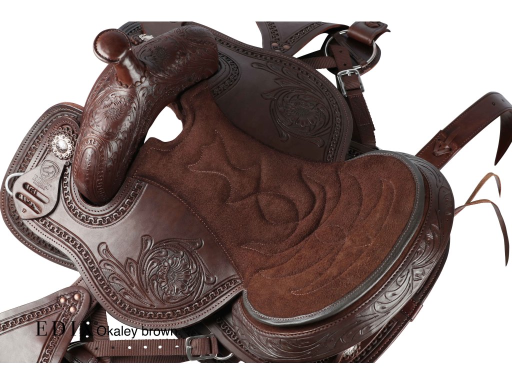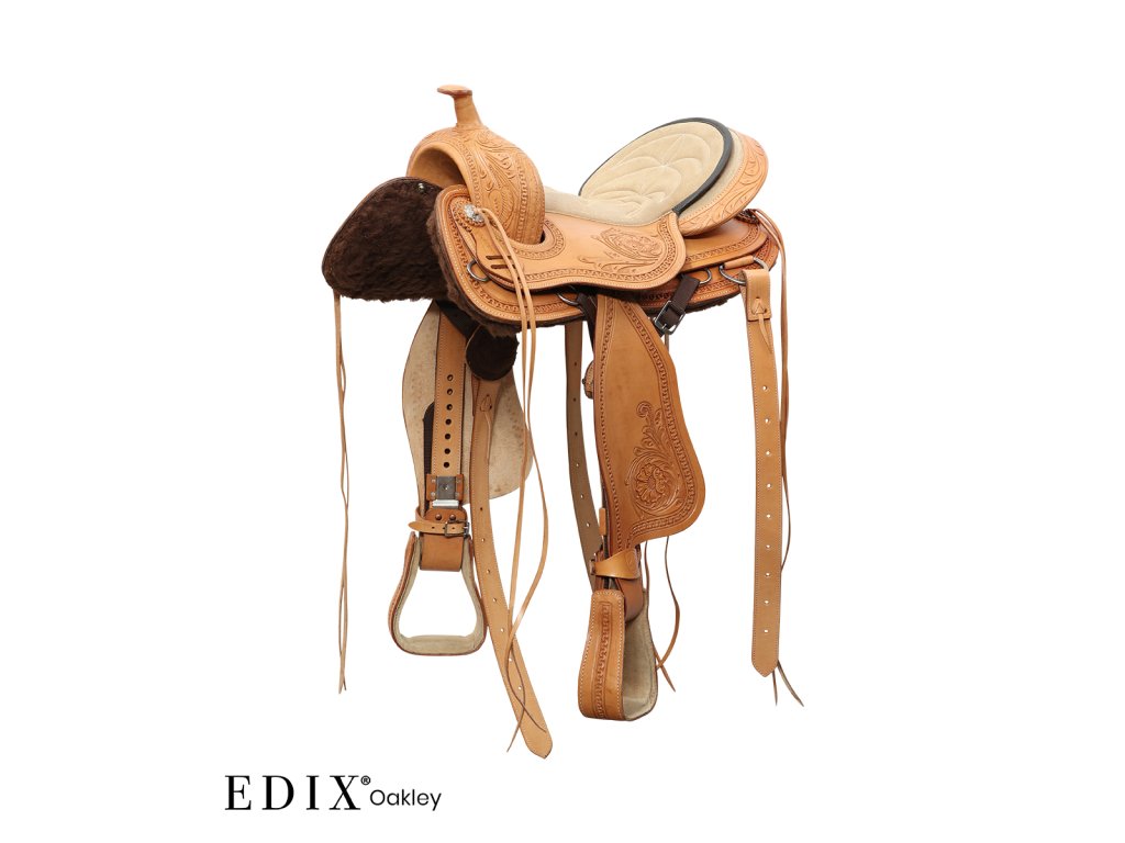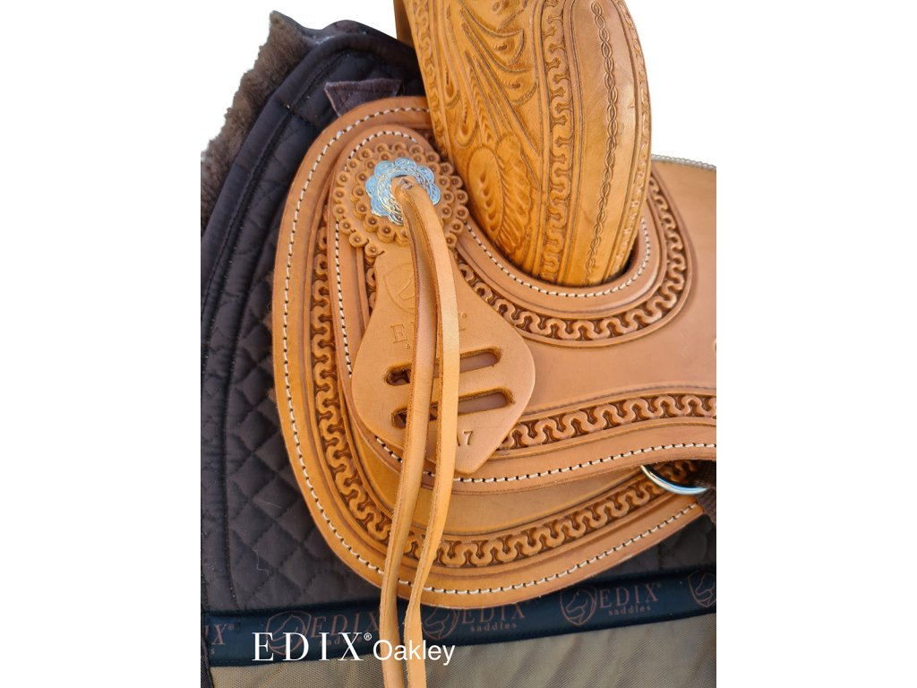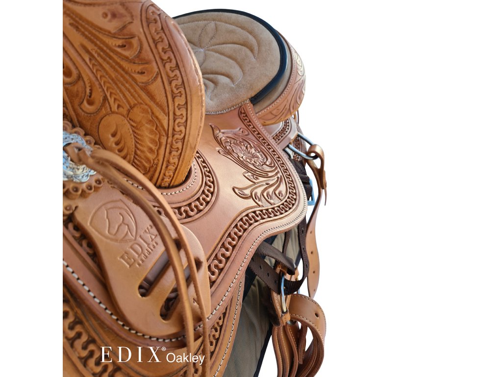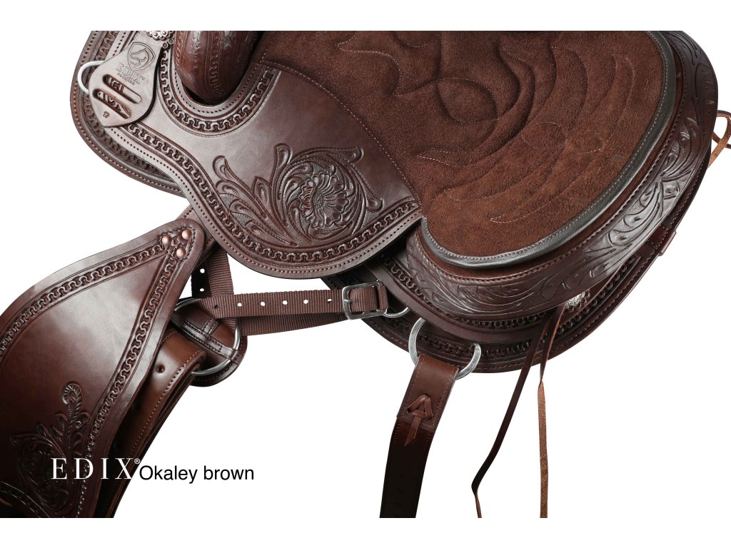 EDIX® Oakley je k dispozici v hnědé barvě s hnědou nebo přírodní kůží s přírodním posedlím a ve velikostech S (16"), M (17") a L (18"). Varianty tohoto sedla vyrobené na míru mají dodací lhůtu 8 týdnů.