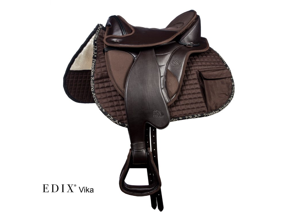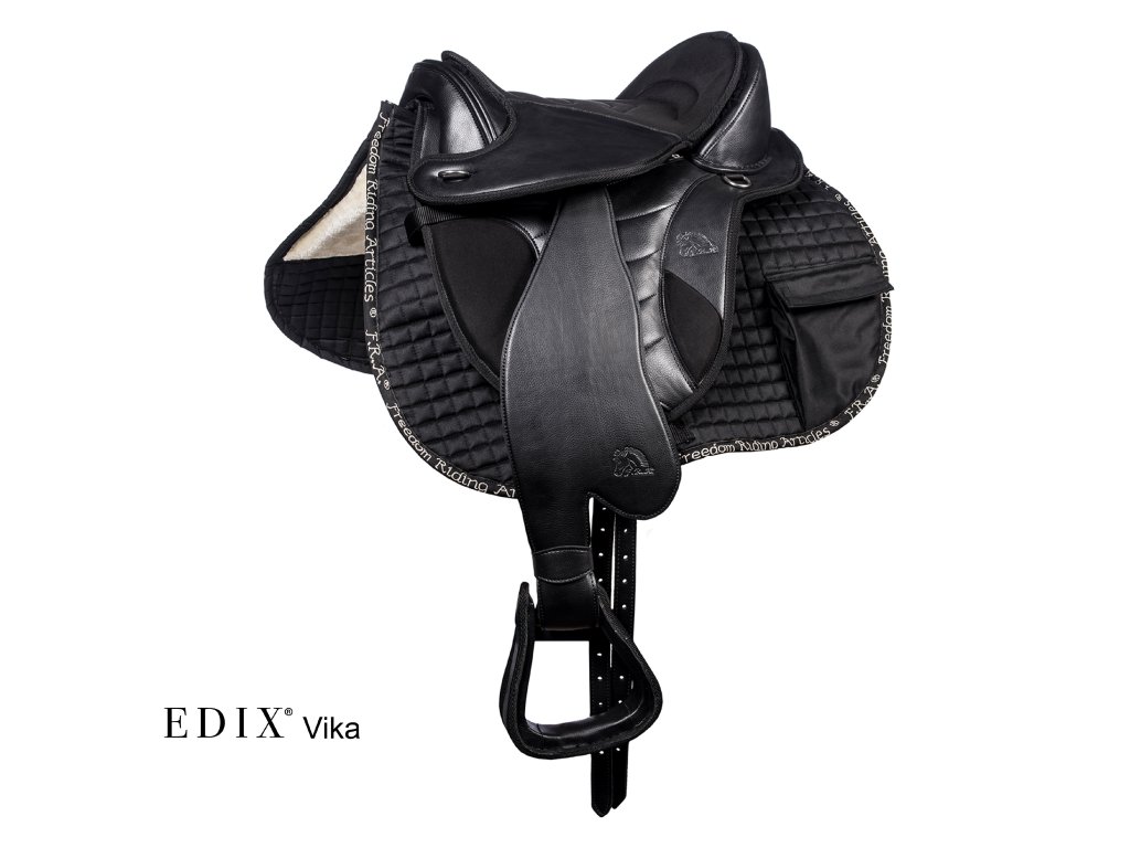Bezkostrové univerzální sedlo vyrobené výhradně z vysoce kvalitních syntetických materiálů, díky čemuž je toto sedlo velmi praktické a lehké. Svým vzhledem a pohodlím splňuje EDIX Vika všechny požadavky, které si jezdec může přát, pokud jde o rekreační všestrannou jízdu na koni. Ve stejném stylu jako sedlo Vika byly vyvinuty odpovídající široké fendry ze syntetické kůže, které byly v kombinaci s westernovou dečkou, hruškou a koženými tkaničkami dodávají sedlu Vika stylový westernový vzhled. Pokud dáváte přednost anglickému stylu, sedla EDIX nabízejí širokou škálu klasických třmenových řemenů a vysoce kvalitních bezpečnostních třmenů z nerezové oceli nebo lehkých PVC třmenů, abyste si vytvořili vlastní styl. Rádi poradíme s výběrem.